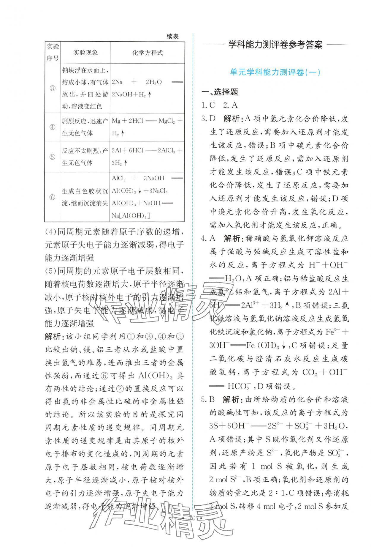 注:目前有些书本章节名称可能整理的还不是很完善,但都是按照顺序排列的,请同学们按照顺序仔细查找。练习册 2025年能力培养与测试高中化学必修第一册人教版 答案主要是用来给同学们做完题方便对答案用的,请勿直接抄袭。