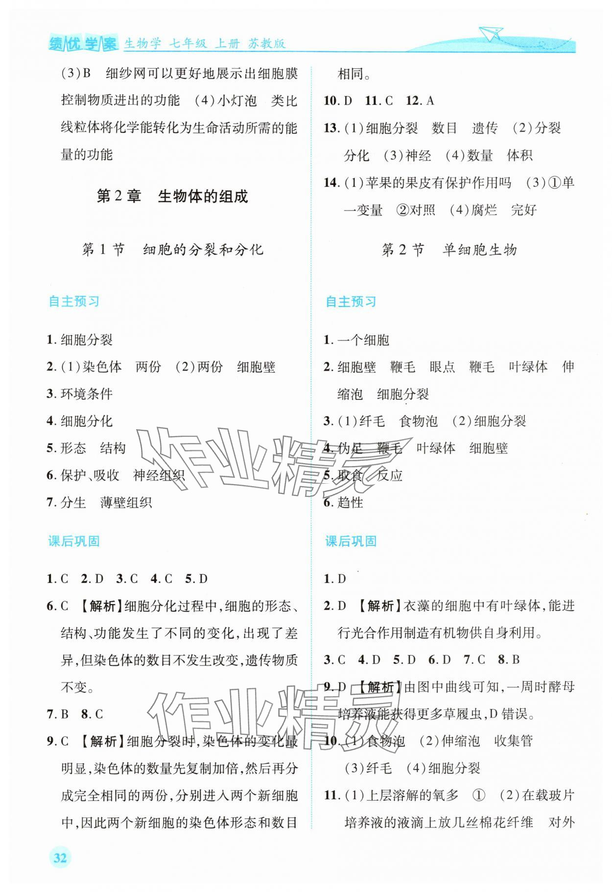 注:目前有些书本章节名称可能整理的还不是很完善,但都是按照顺序排列的,请同学们按照顺序仔细查找。练习册2025年绩优学案七年级生物上册苏教版答案主要是用来给同学们做完题方便对答案用的,请勿直接抄袭。