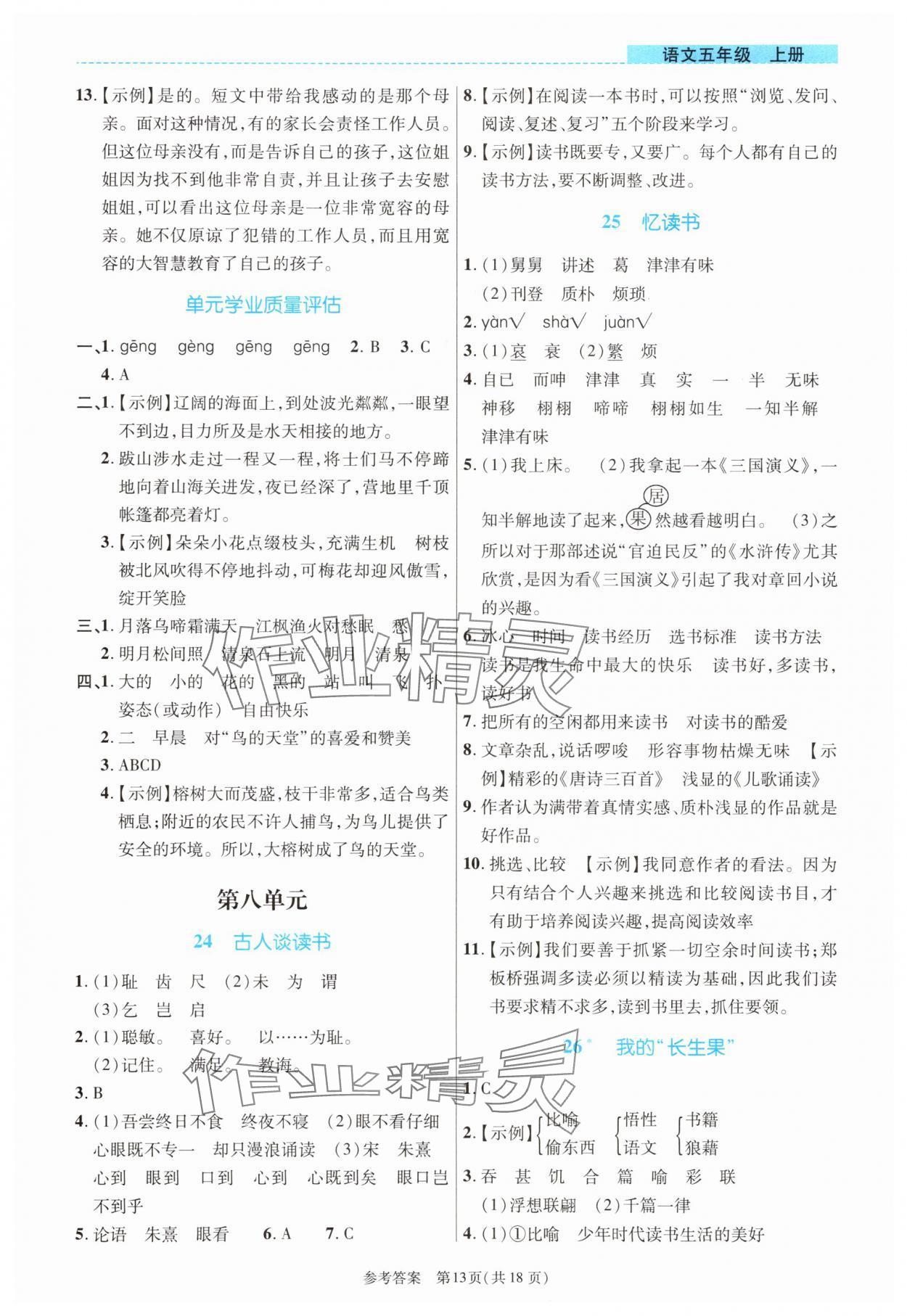 注:目前有些书本章节名称可能整理的还不是很完善,但都是按照顺序排列的,请同学们按照顺序仔细查找。练习册 2025年课内课外直通车五年级语文上册人教版河南专版 答案主要是用来给同学们做完题方便对答案用的,请勿直接抄袭。