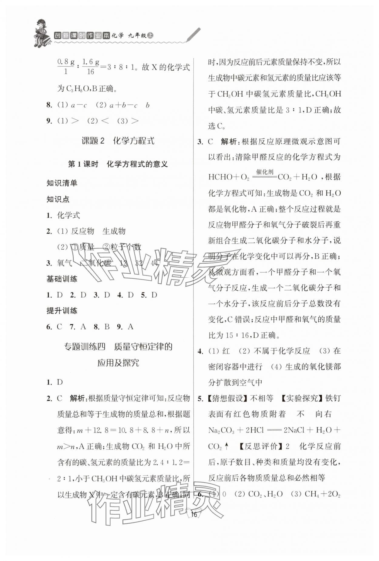 注:目前有些书本章节名称可能整理的还不是很完善,但都是按照顺序排列的,请同学们按照顺序仔细查找。练习册 2025年创新课时作业本江苏凤凰少年儿童出版社九年级化学上册人教版 答案主要是用来给同学们做完题方便对答案用的,请勿直接抄袭。