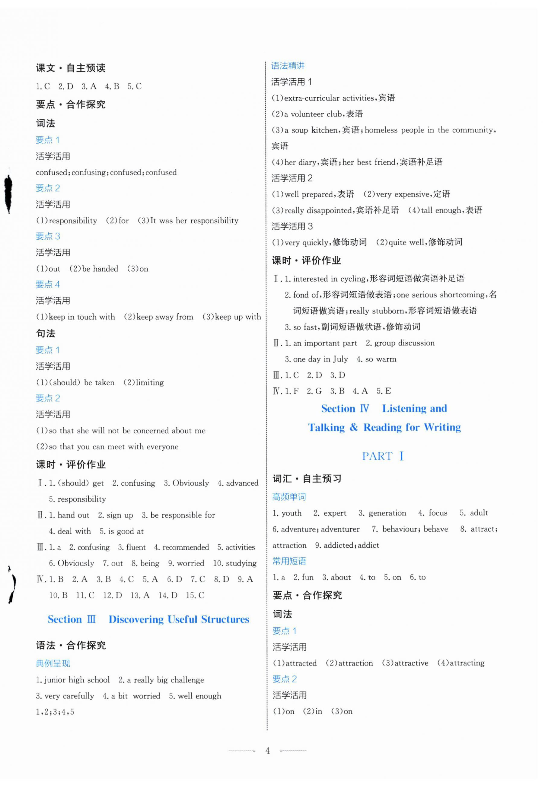 精英家教网> 2025年阳光课堂人民教育出版社高中英语必修第一册人教版福建专版 > 第4页 参考答案