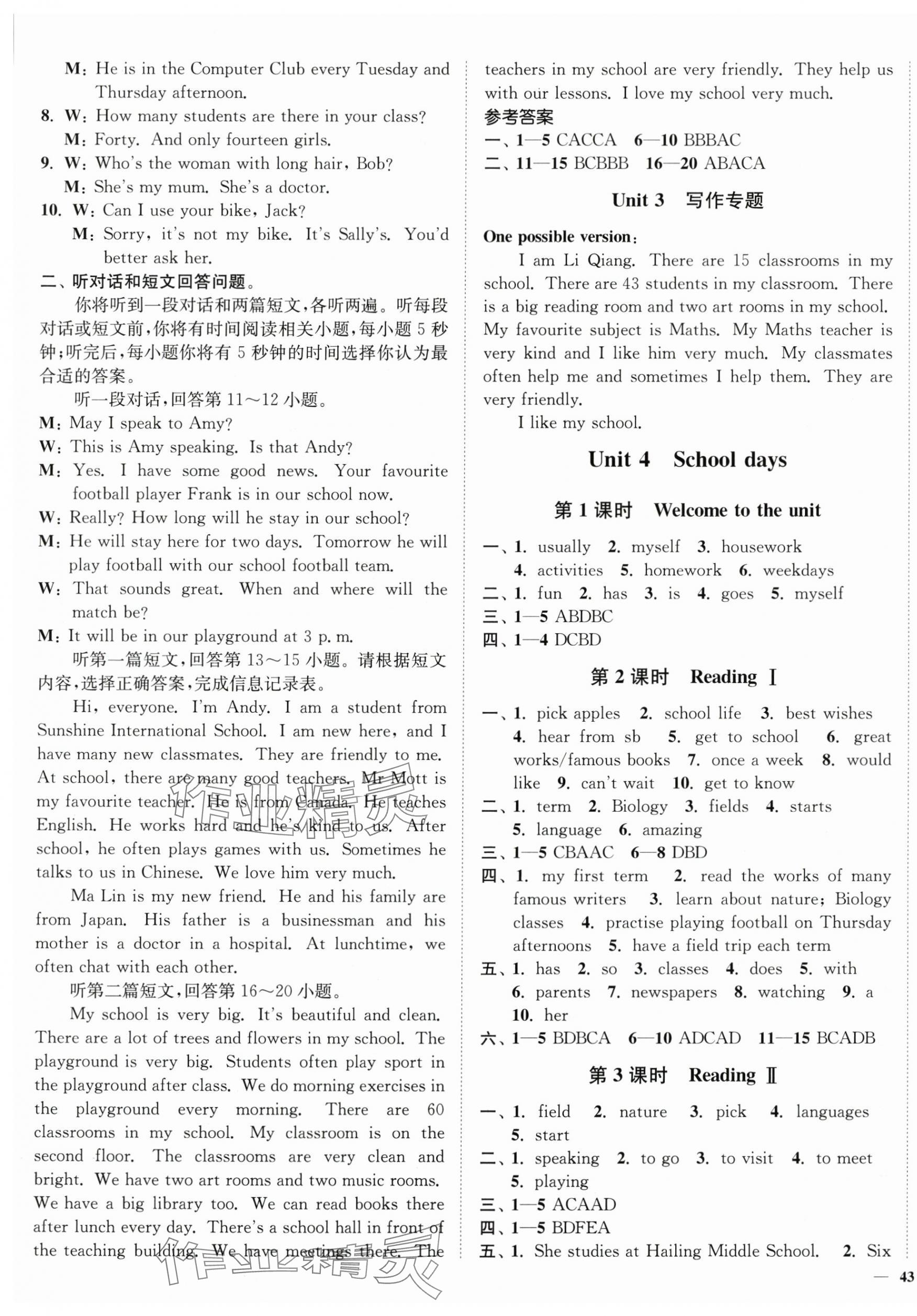注:目前有些书本章节名称可能整理的还不是很完善,但都是按照顺序排列的,请同学们按照顺序仔细查找。练习册 2025年南通小题课时作业本七年级英语上册译林版宿迁专版 答案主要是用来给同学们做完题方便对答案用的,请勿直接抄袭。