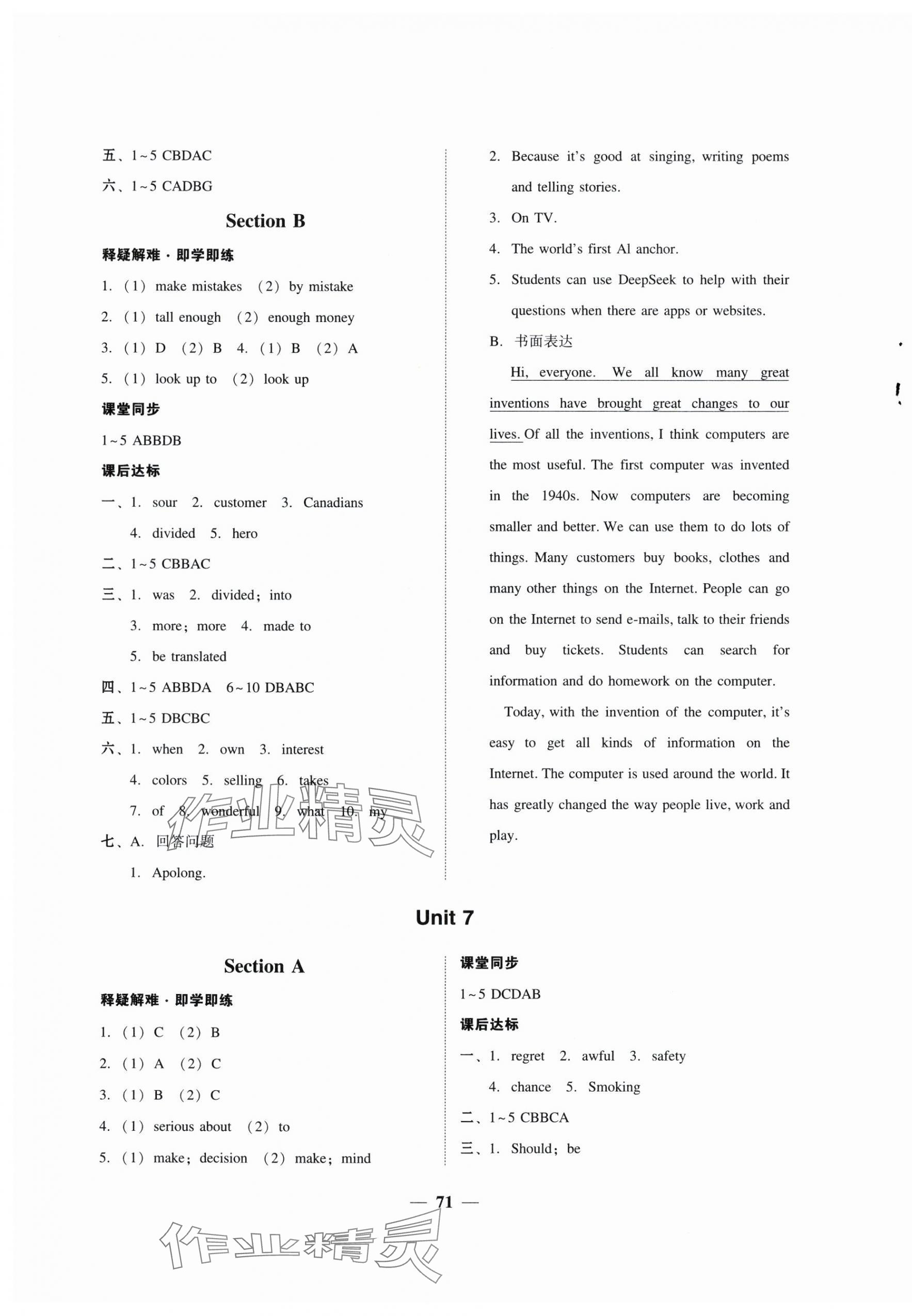 注:目前有些书本章节名称可能整理的还不是很完善,但都是按照顺序排列的,请同学们按照顺序仔细查找。练习册 2025年南粤学典学考精练九年级英语全一册人教版 答案主要是用来给同学们做完题方便对答案用的,请勿直接抄袭。