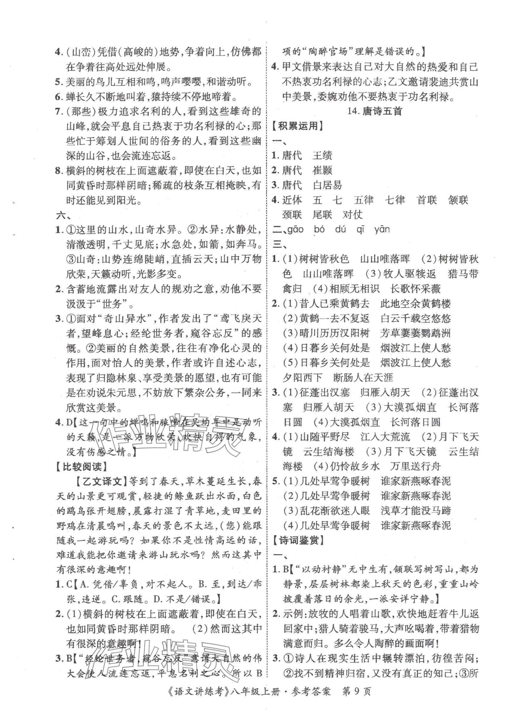 注:目前有些书本章节名称可能整理的还不是很完善,但都是按照顺序排列的,请同学们按照顺序仔细查找。练习册 2025年语文讲练考八年级上册人教版 答案主要是用来给同学们做完题方便对答案用的,请勿直接抄袭。