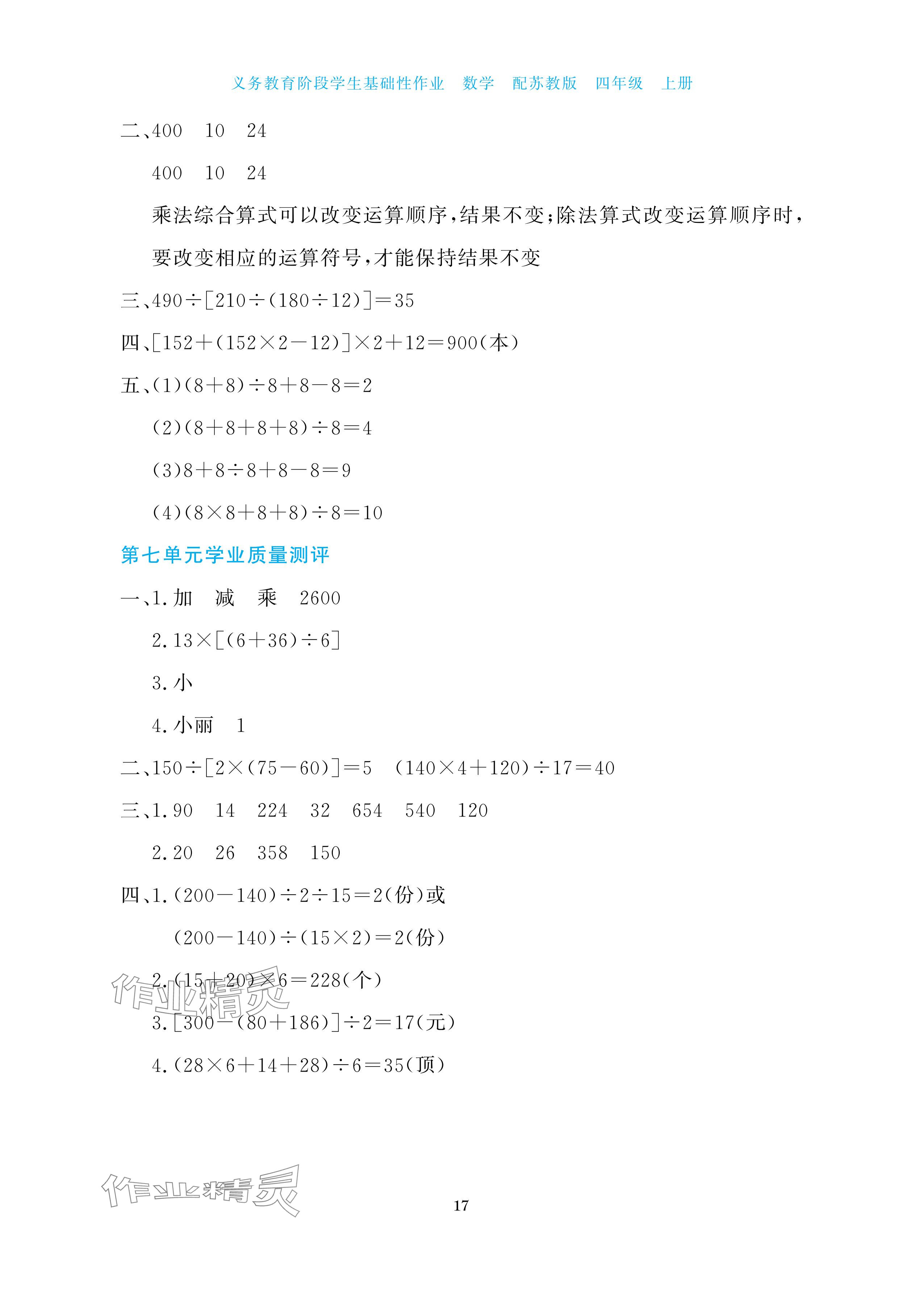 注:目前有些书本章节名称可能整理的还不是很完善,但都是按照顺序排列的,请同学们按照顺序仔细查找。练习册 2025年学生基础性作业四年级数学上册苏教版 答案主要是用来给同学们做完题方便对答案用的,请勿直接抄袭。