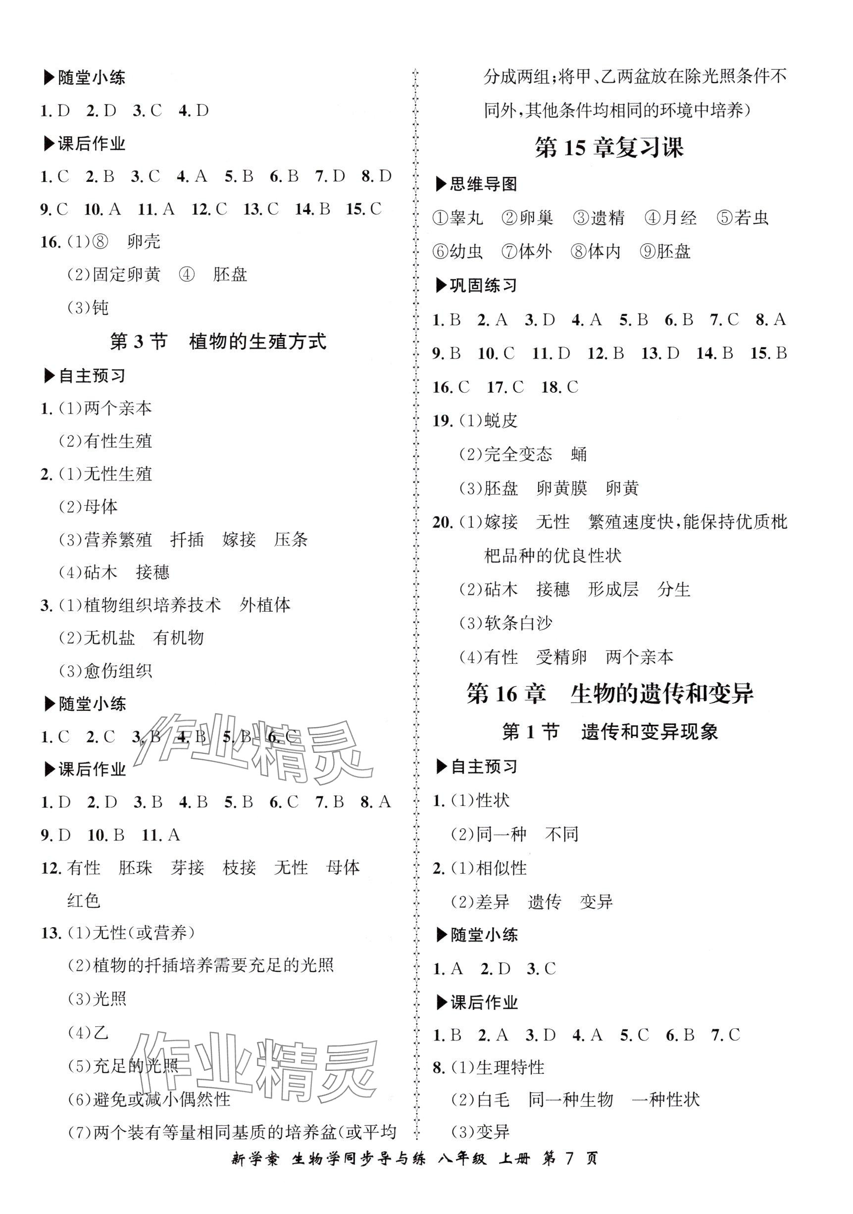 注:目前有些书本章节名称可能整理的还不是很完善,但都是按照顺序排列的,请同学们按照顺序仔细查找。练习册 2025年新学案同步导与练八年级生物上册北师大版 答案主要是用来给同学们做完题方便对答案用的,请勿直接抄袭。