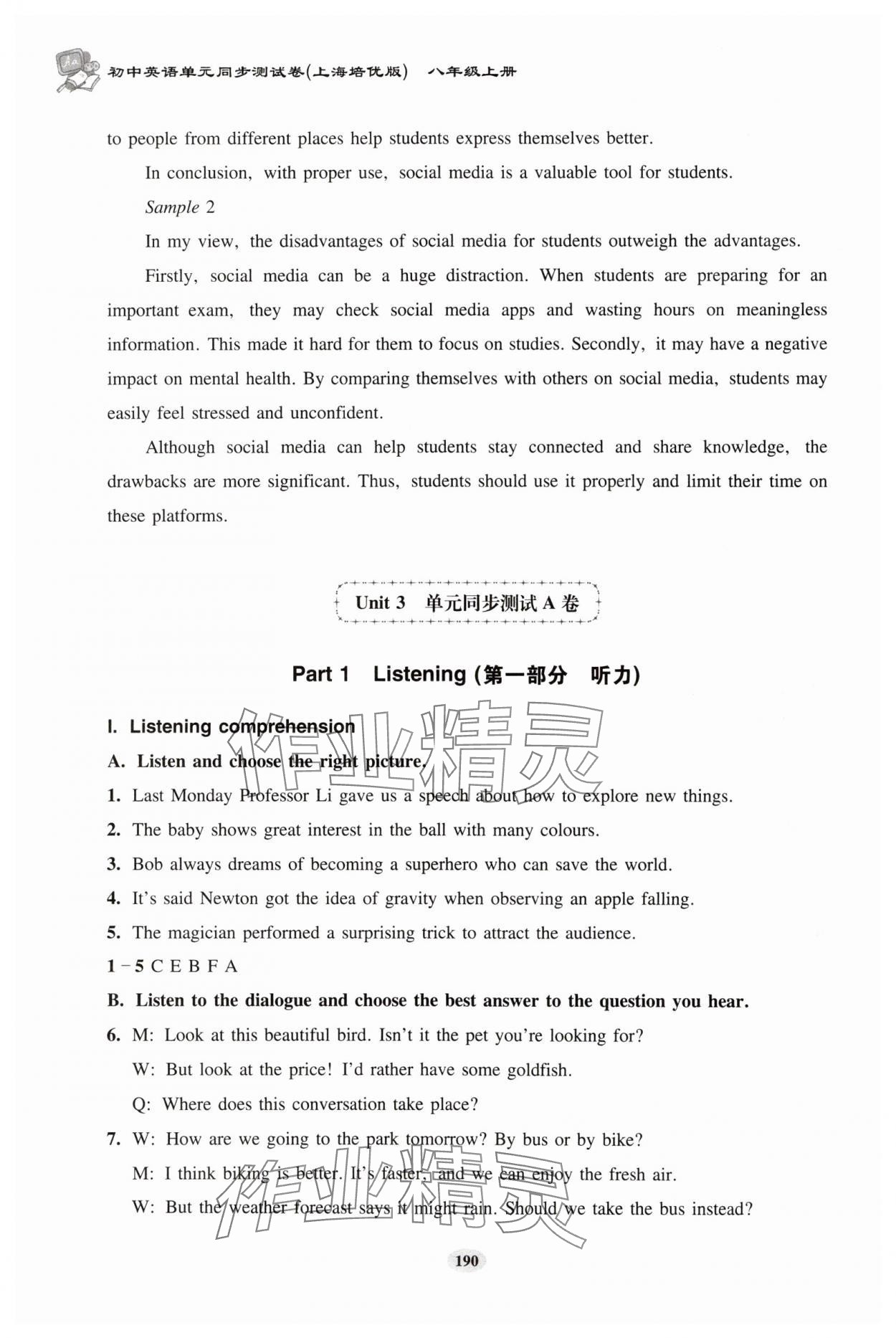 注:目前有些书本章节名称可能整理的还不是很完善,但都是按照顺序排列的,请同学们按照顺序仔细查找。练习册 2025年初中英语单元同步测试卷八年级英语上册沪教版 答案主要是用来给同学们做完题方便对答案用的,请勿直接抄袭。