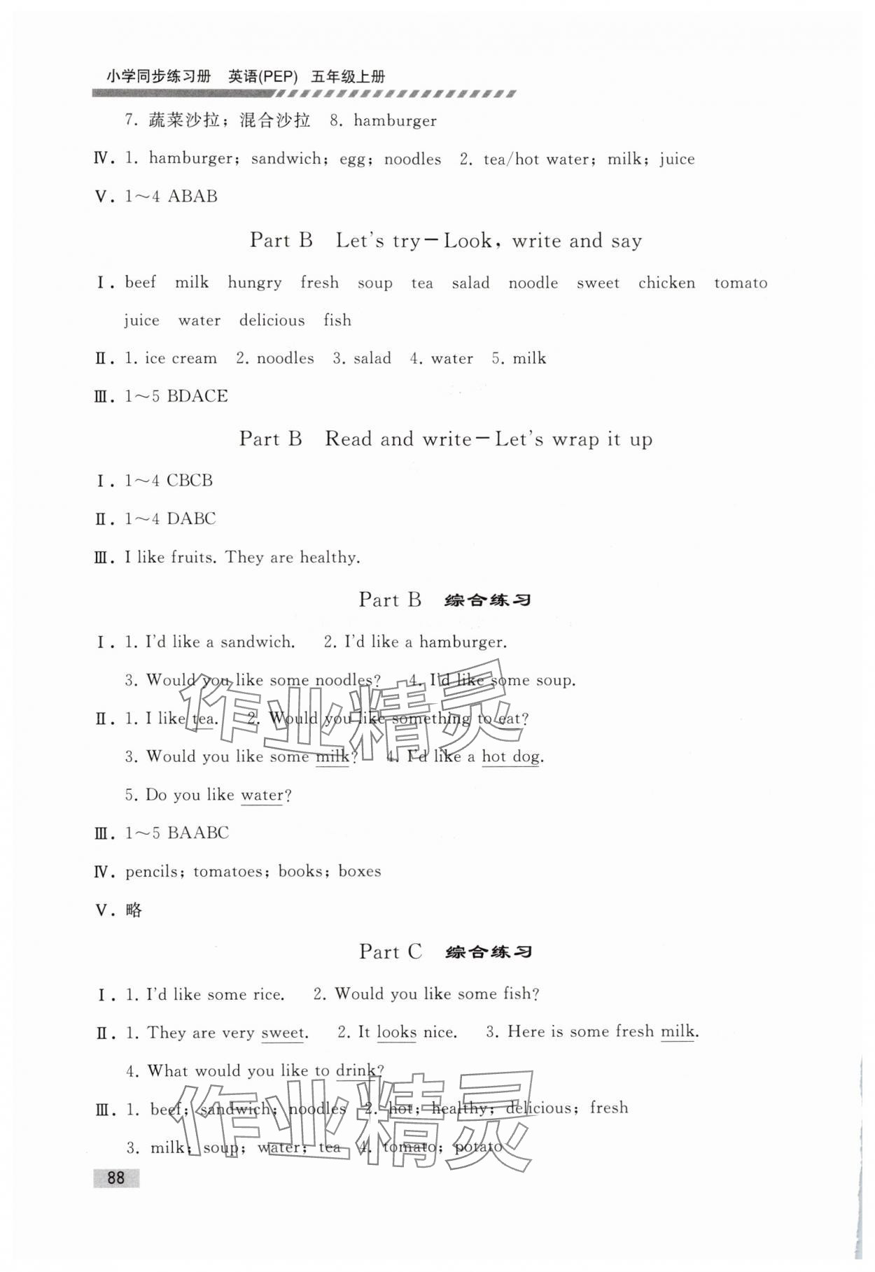 注:目前有些书本章节名称可能整理的还不是很完善,但都是按照顺序排列的,请同学们按照顺序仔细查找。练习册 2025年同步练习册人民教育出版社五年级英语上册人教版山东专版 答案主要是用来给同学们做完题方便对答案用的,请勿直接抄袭。