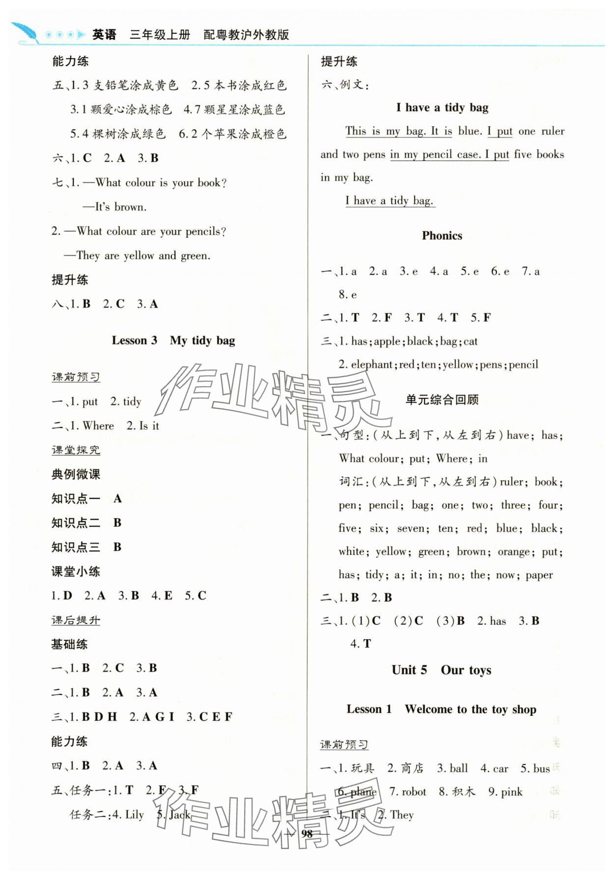 注:目前有些书本章节名称可能整理的还不是很完善,但都是按照顺序排列的,请同学们按照顺序仔细查找。练习册 2025年南方新课堂金牌学案三年级英语上册粤人版 答案主要是用来给同学们做完题方便对答案用的,请勿直接抄袭。