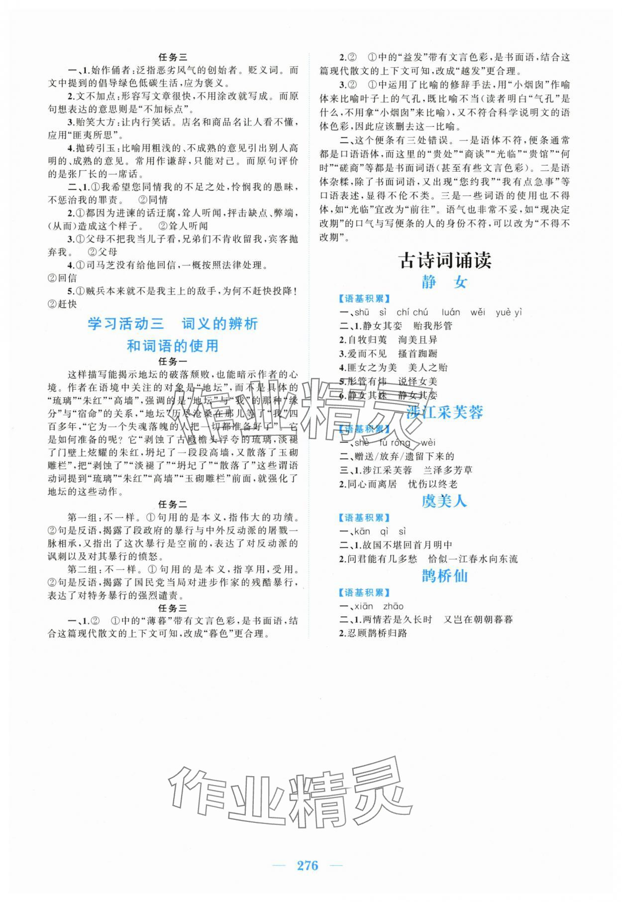 注:目前有些书本章节名称可能整理的还不是很完善,但都是按照顺序排列的,请同学们按照顺序仔细查找。练习册 2025年长江作业本同步练习册高中语文必修上册人教版 答案主要是用来给同学们做完题方便对答案用的,请勿直接抄袭。