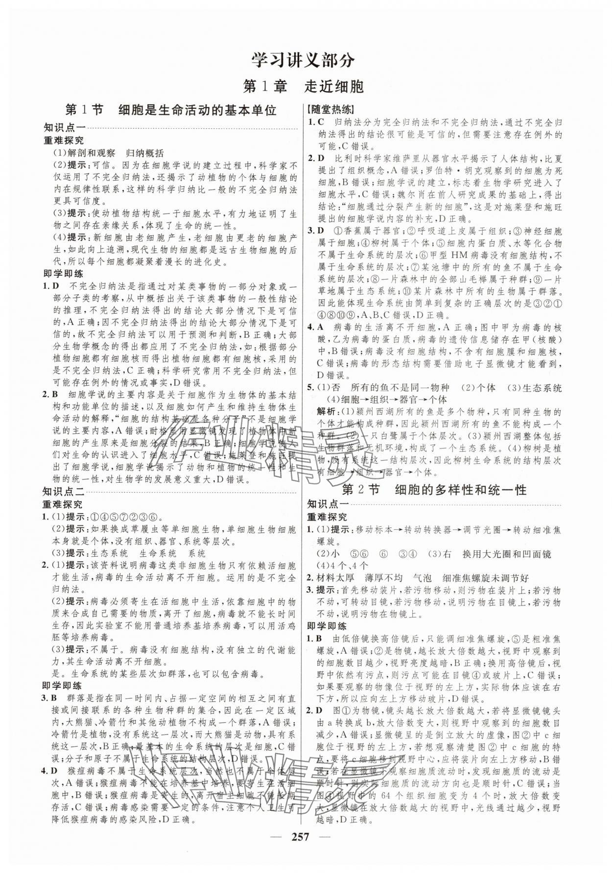 注:目前有些书本章节名称可能整理的还不是很完善,但都是按照顺序排列的,请同学们按照顺序仔细查找。练习册2025年三维设计高中生物必修1人教版答案主要是用来给同学们做完题方便对答案用的,请勿直接抄袭。