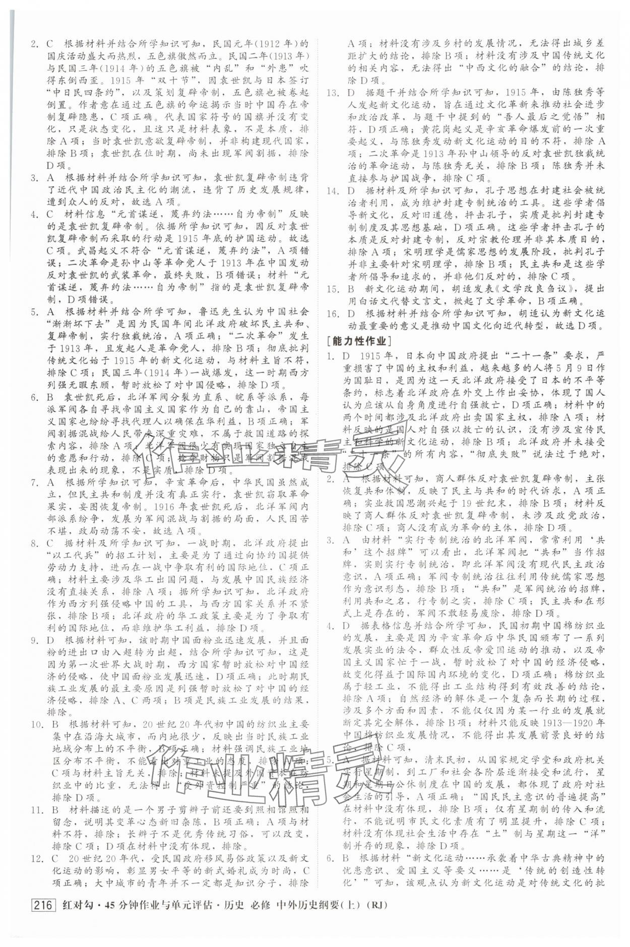 注:目前有些书本章节名称可能整理的还不是很完善,但都是按照顺序排列的,请同学们按照顺序仔细查找。练习册 2025年红对勾45分钟作业与单元评估高中历史必修上册人教版 答案主要是用来给同学们做完题方便对答案用的,请勿直接抄袭。