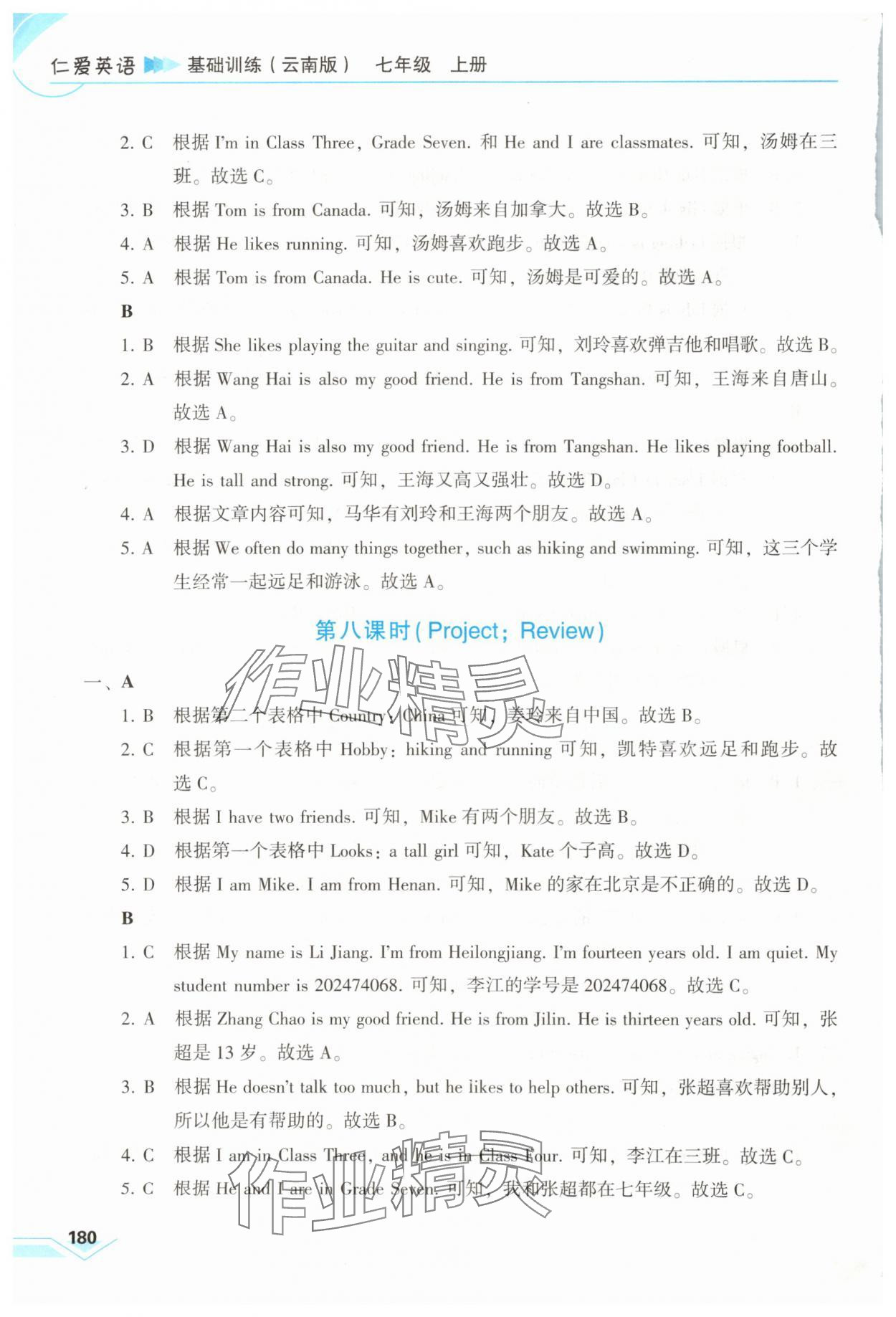 注:目前有些书本章节名称可能整理的还不是很完善,但都是按照顺序排列的,请同学们按照顺序仔细查找。练习册 2025年仁爱英语基础训练七年级上册仁爱版云南专版 答案主要是用来给同学们做完题方便对答案用的,请勿直接抄袭。