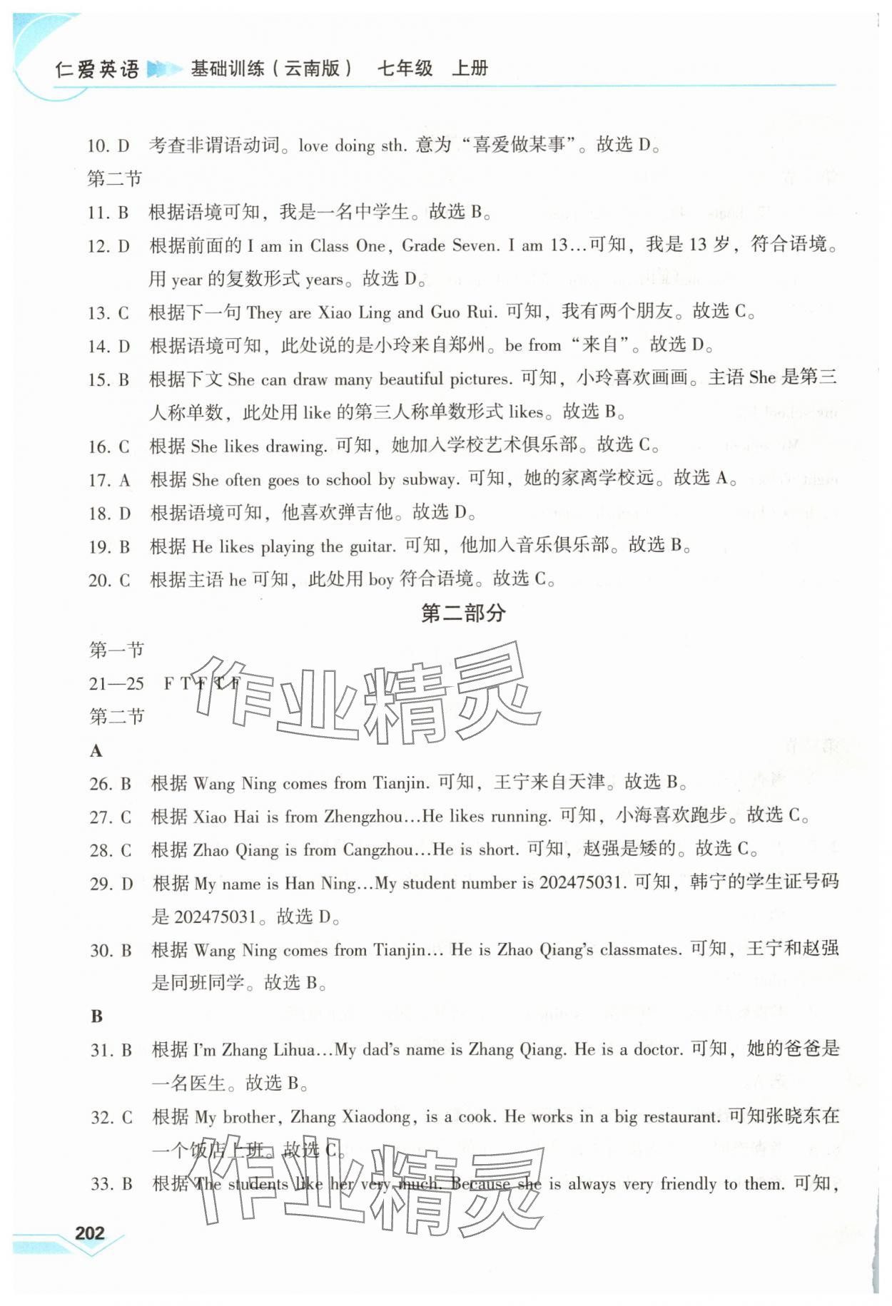 注:目前有些书本章节名称可能整理的还不是很完善,但都是按照顺序排列的,请同学们按照顺序仔细查找。练习册 2025年仁爱英语基础训练七年级上册仁爱版云南专版 答案主要是用来给同学们做完题方便对答案用的,请勿直接抄袭。