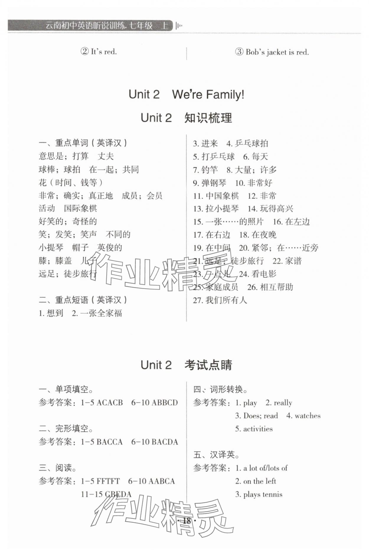 注:目前有些书本章节名称可能整理的还不是很完善,但都是按照顺序排列的,请同学们按照顺序仔细查找。练习册 2025年云南初中英语听说训练七年级英语上册 答案主要是用来给同学们做完题方便对答案用的,请勿直接抄袭。