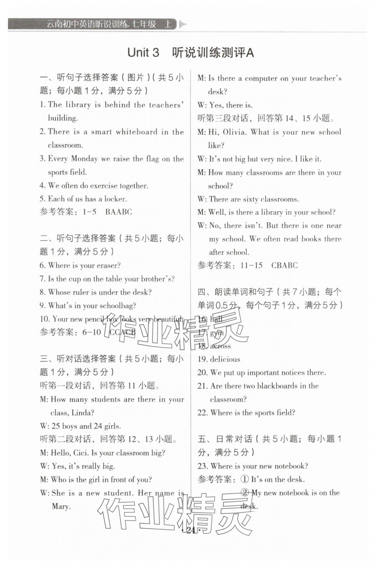 注:目前有些书本章节名称可能整理的还不是很完善,但都是按照顺序排列的,请同学们按照顺序仔细查找。练习册 2025年云南初中英语听说训练七年级英语上册 答案主要是用来给同学们做完题方便对答案用的,请勿直接抄袭。