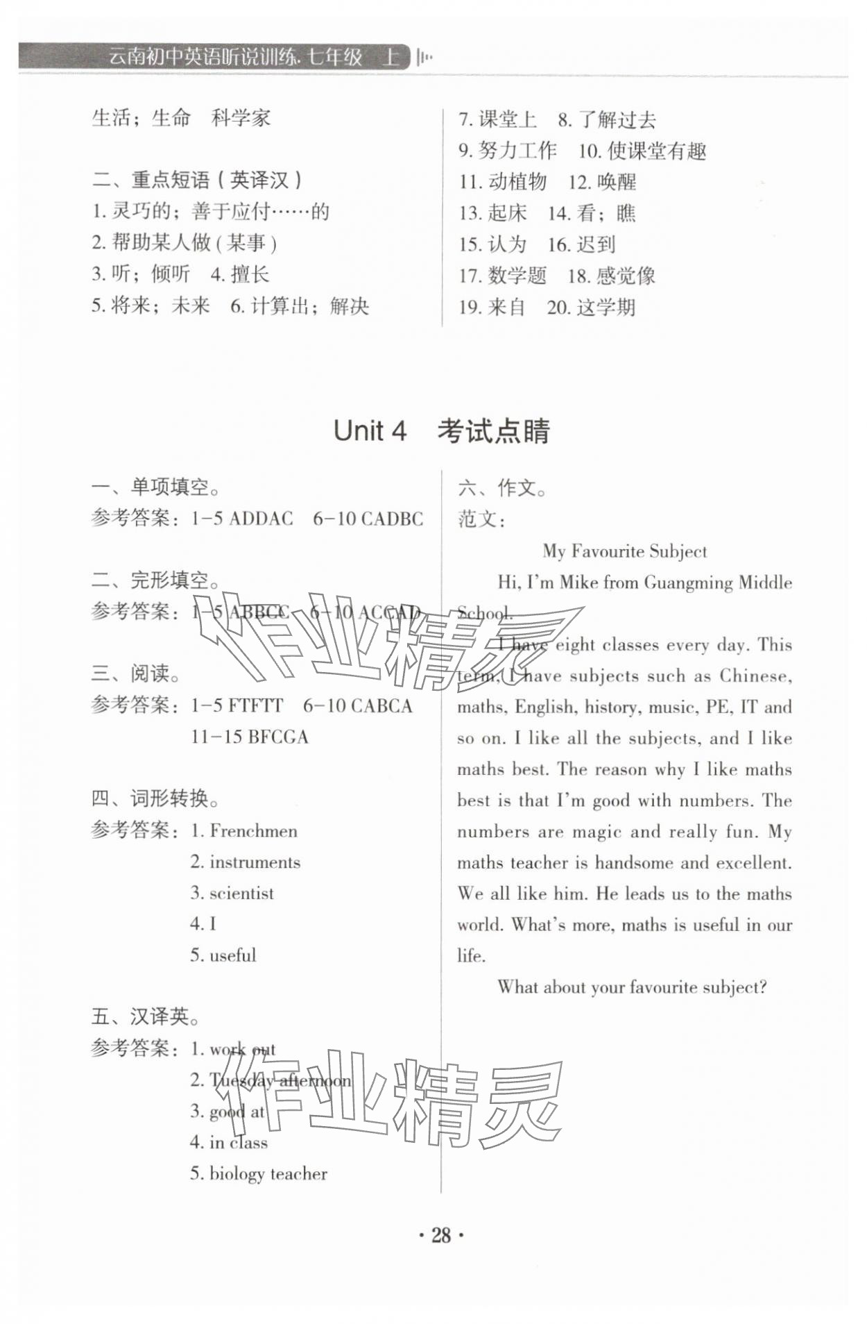 注:目前有些书本章节名称可能整理的还不是很完善,但都是按照顺序排列的,请同学们按照顺序仔细查找。练习册 2025年云南初中英语听说训练七年级英语上册 答案主要是用来给同学们做完题方便对答案用的,请勿直接抄袭。