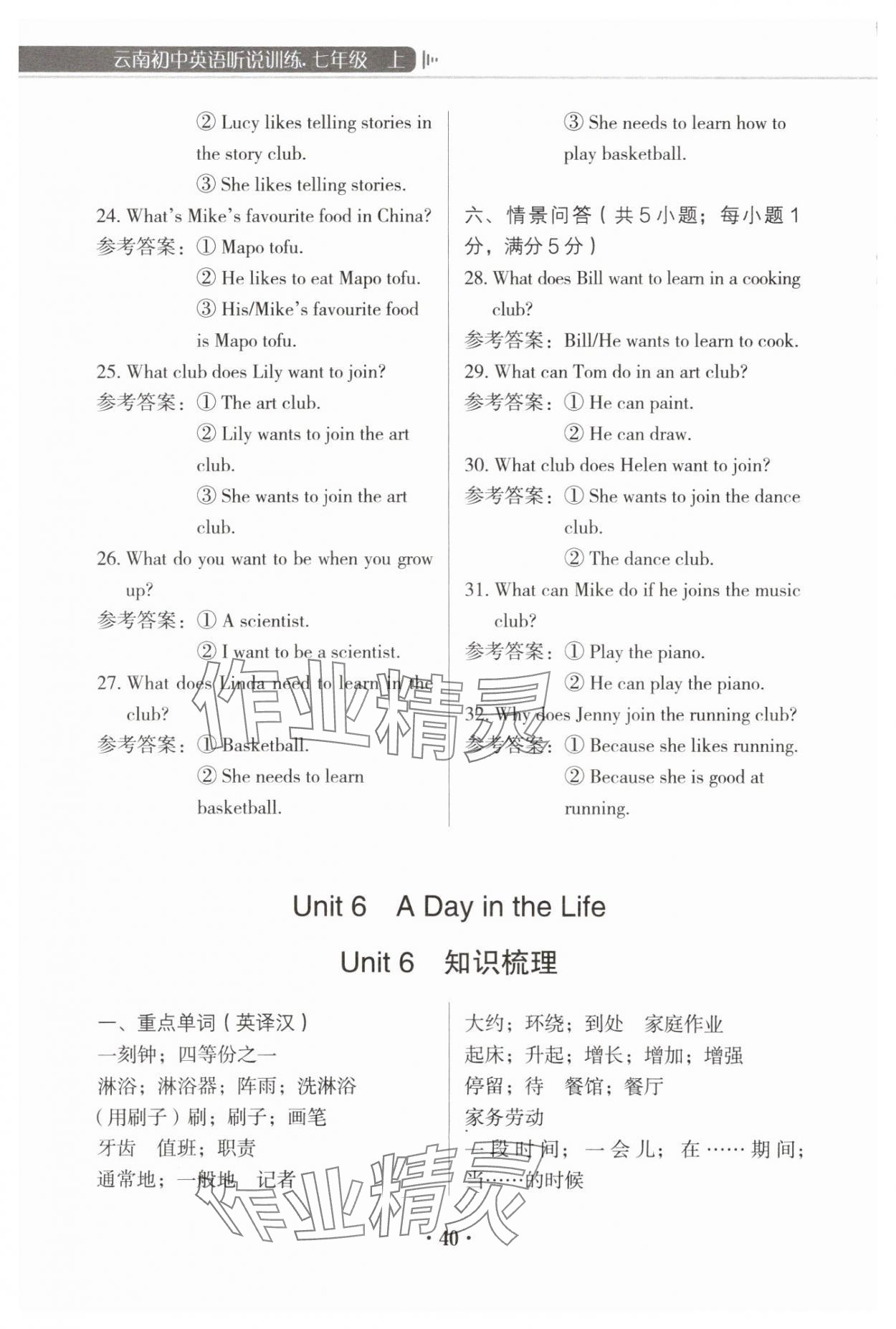 注:目前有些书本章节名称可能整理的还不是很完善,但都是按照顺序排列的,请同学们按照顺序仔细查找。练习册 2025年云南初中英语听说训练七年级英语上册 答案主要是用来给同学们做完题方便对答案用的,请勿直接抄袭。