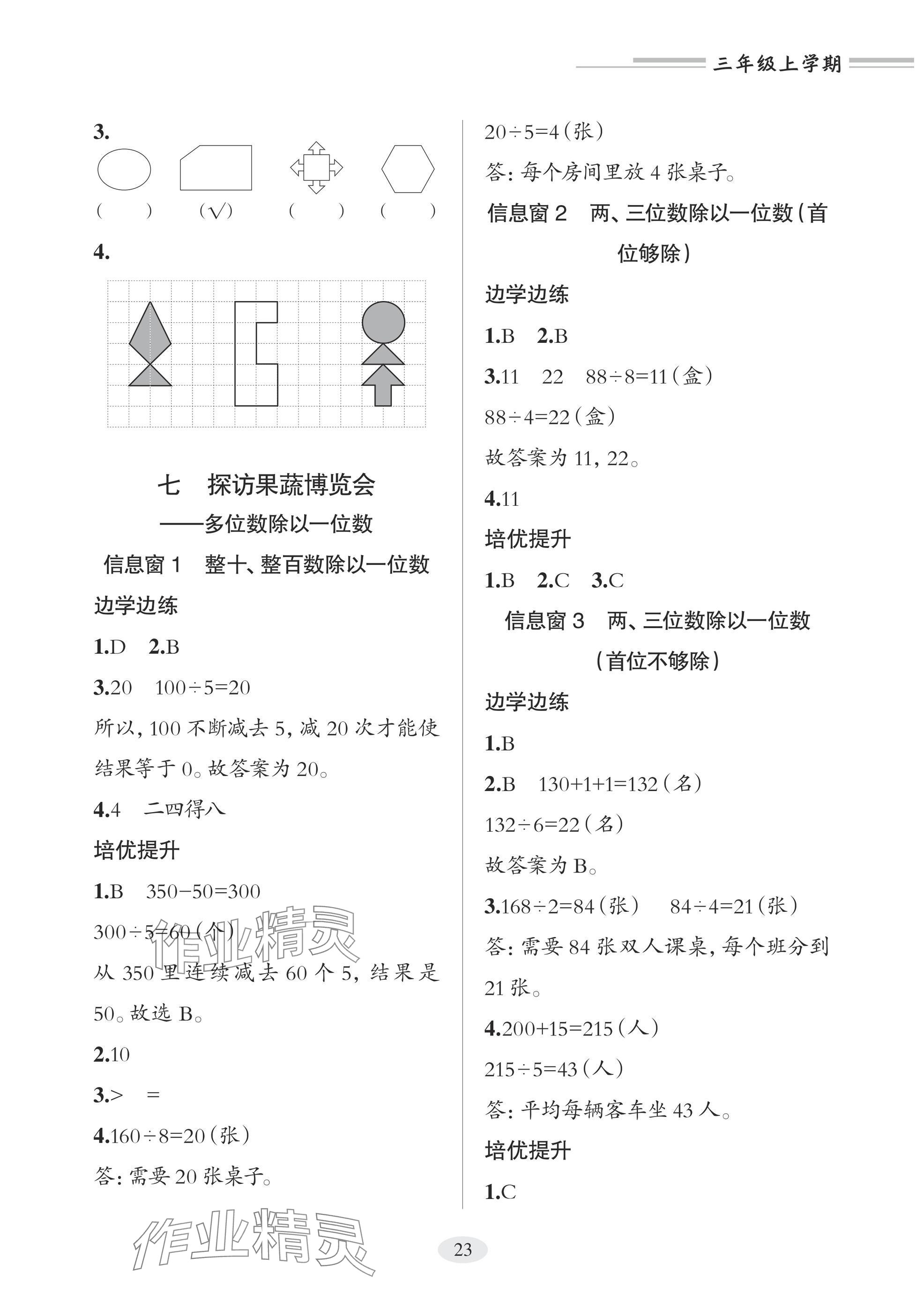 注:目前有些书本章节名称可能整理的还不是很完善,但都是按照顺序排列的,请同学们按照顺序仔细查找。练习册 2025年精练课堂分层作业三年级数学上册青岛版 答案主要是用来给同学们做完题方便对答案用的,请勿直接抄袭。