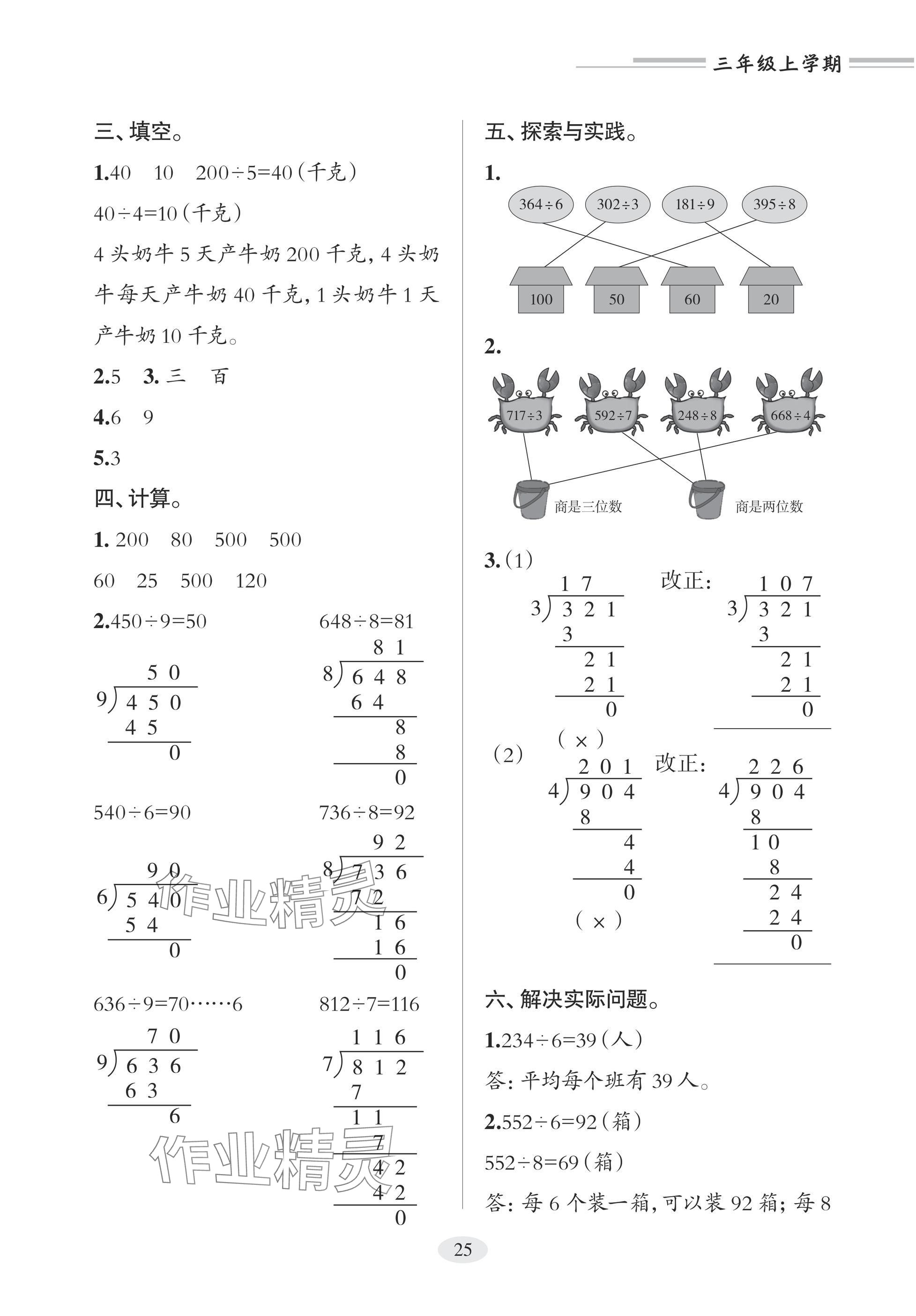 注:目前有些书本章节名称可能整理的还不是很完善,但都是按照顺序排列的,请同学们按照顺序仔细查找。练习册 2025年精练课堂分层作业三年级数学上册青岛版 答案主要是用来给同学们做完题方便对答案用的,请勿直接抄袭。