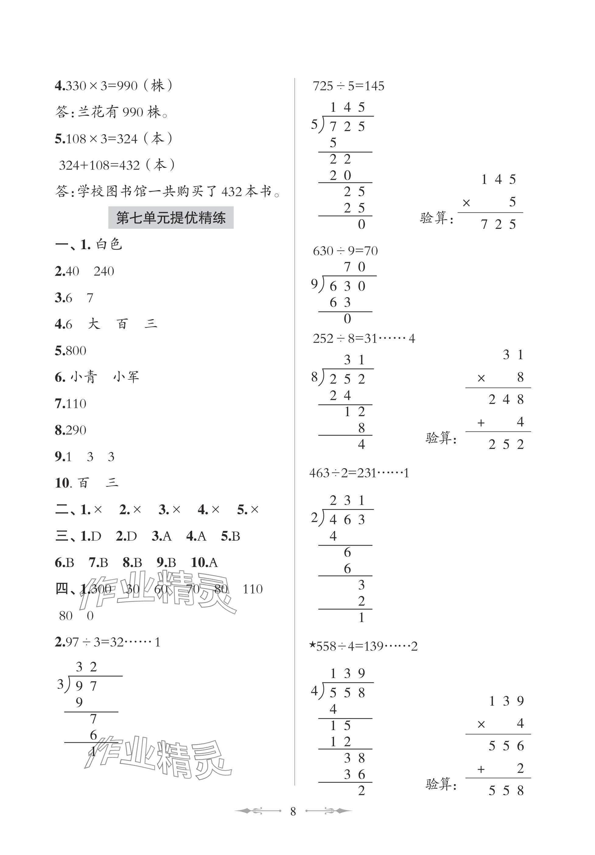 注:目前有些书本章节名称可能整理的还不是很完善,但都是按照顺序排列的,请同学们按照顺序仔细查找。练习册 2025年精练课堂分层作业三年级数学上册青岛版 答案主要是用来给同学们做完题方便对答案用的,请勿直接抄袭。