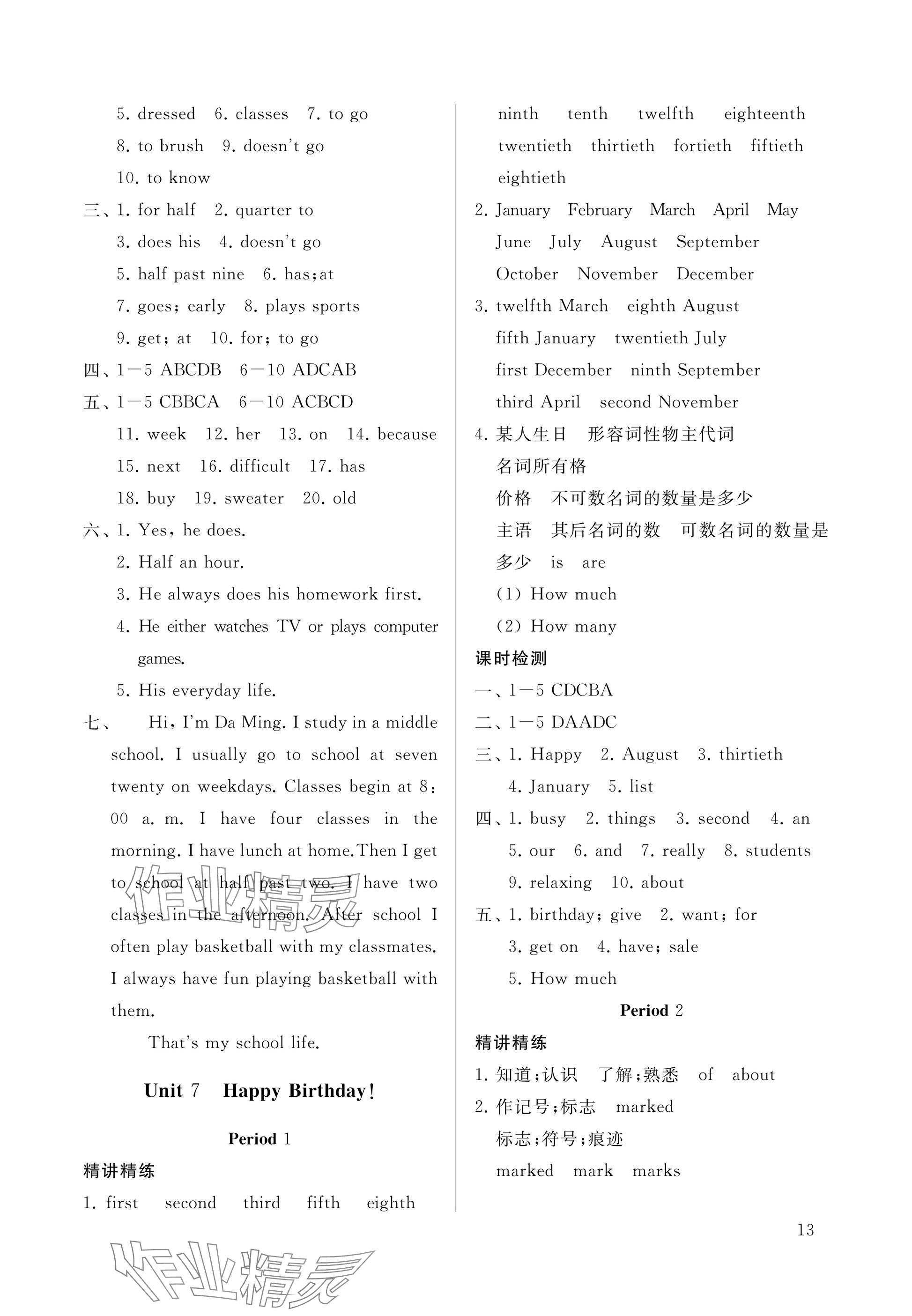 注:目前有些书本章节名称可能整理的还不是很完善,但都是按照顺序排列的,请同学们按照顺序仔细查找。练习册 2025年新课程助学丛书七年级英语上册人教版 答案主要是用来给同学们做完题方便对答案用的,请勿直接抄袭。