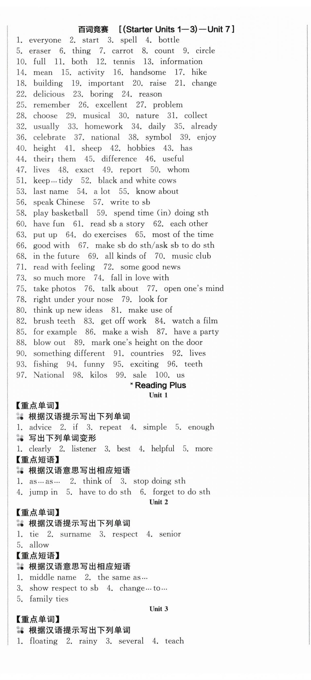 注:目前有些书本章节名称可能整理的还不是很完善,但都是按照顺序排列的,请同学们按照顺序仔细查找。练习册 2025年全品小复习七年级英语上册人教版新疆专版 答案主要是用来给同学们做完题方便对答案用的,请勿直接抄袭。