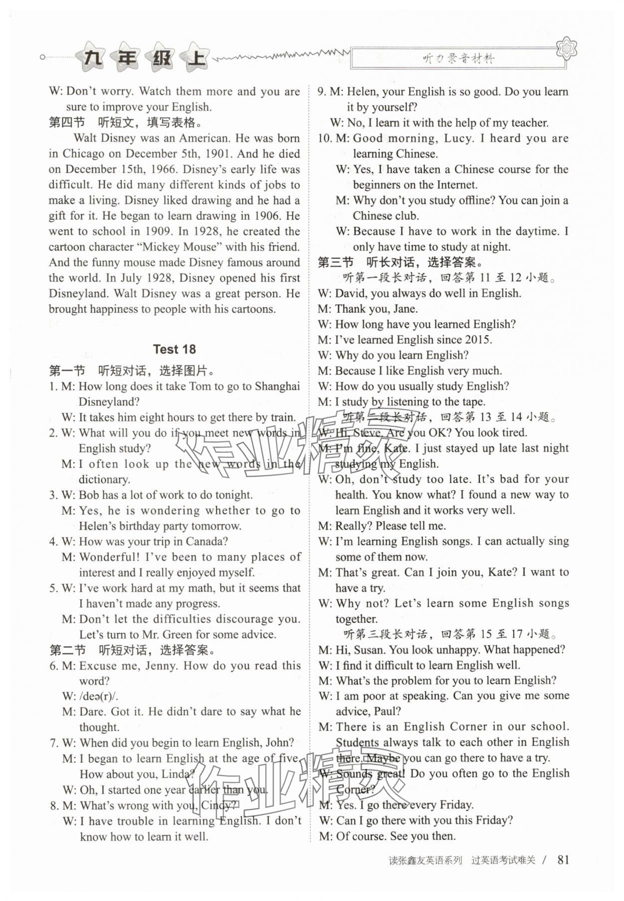 注:目前有些书本章节名称可能整理的还不是很完善,但都是按照顺序排列的,请同学们按照顺序仔细查找。练习册 2025年新目标英语听力训练与测试九年级上册仁爱版 答案主要是用来给同学们做完题方便对答案用的,请勿直接抄袭。