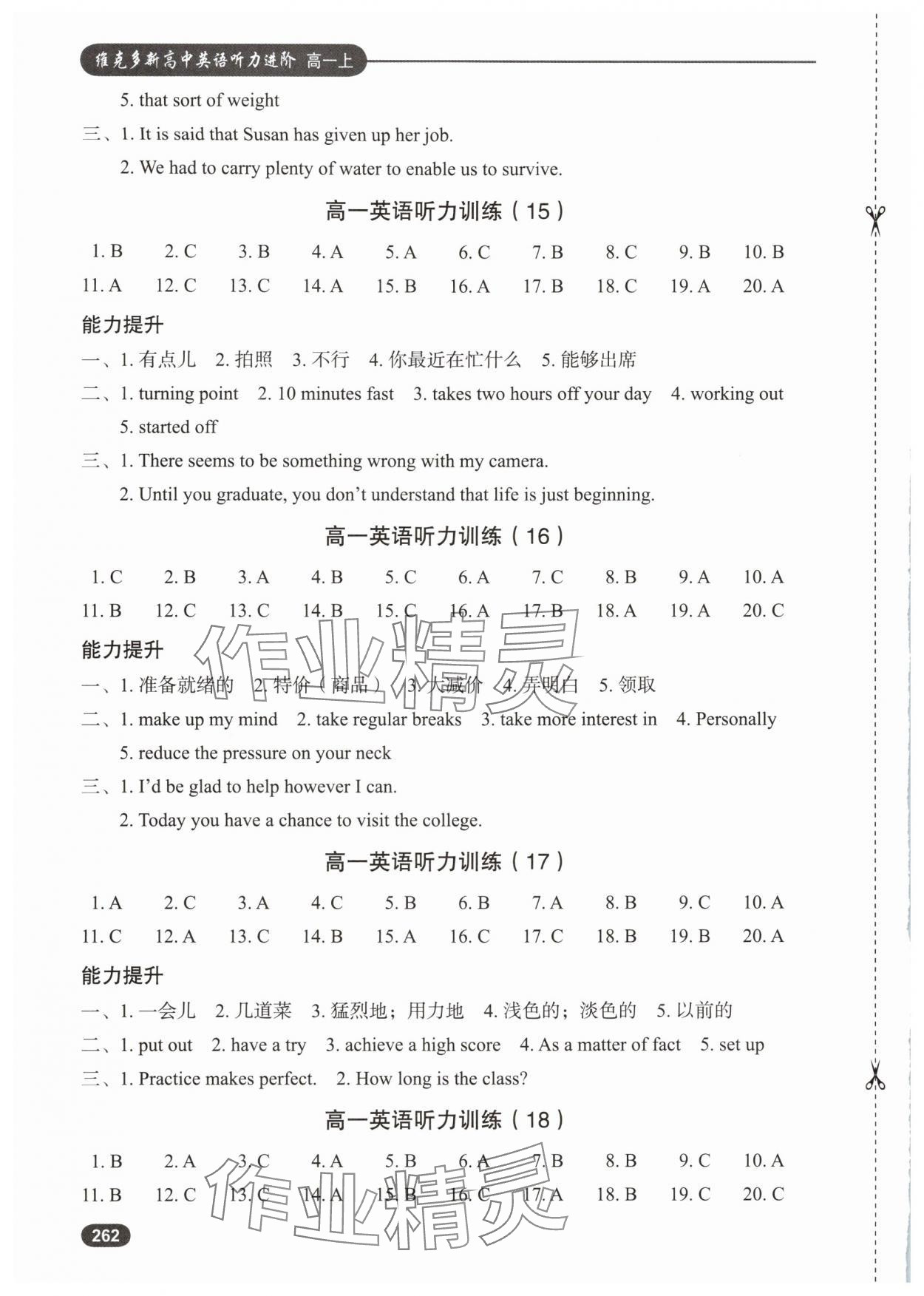 注:目前有些书本章节名称可能整理的还不是很完善,但都是按照顺序排列的,请同学们按照顺序仔细查找。练习册 2025年维克多新高中英语听力进阶高一上册 答案主要是用来给同学们做完题方便对答案用的,请勿直接抄袭。