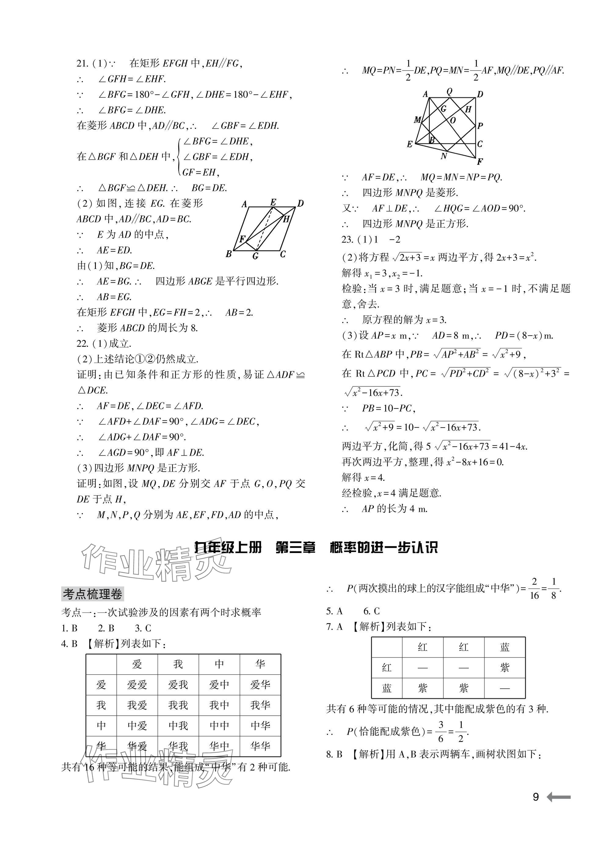 2025年节节高大象出版社九年级数学全一册北师大版 参考答案第9页