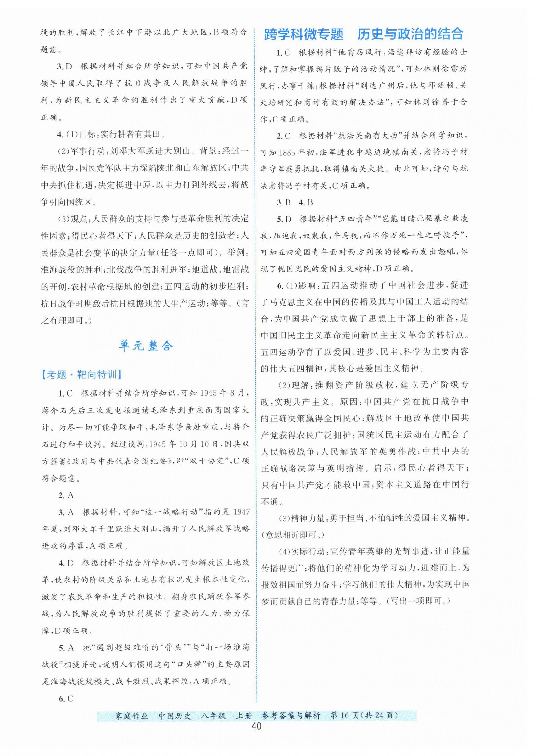 注:目前有些书本章节名称可能整理的还不是很完善,但都是按照顺序排列的,请同学们按照顺序仔细查找。练习册 2025年家庭作业八年级历史上册人教版 答案主要是用来给同学们做完题方便对答案用的,请勿直接抄袭。