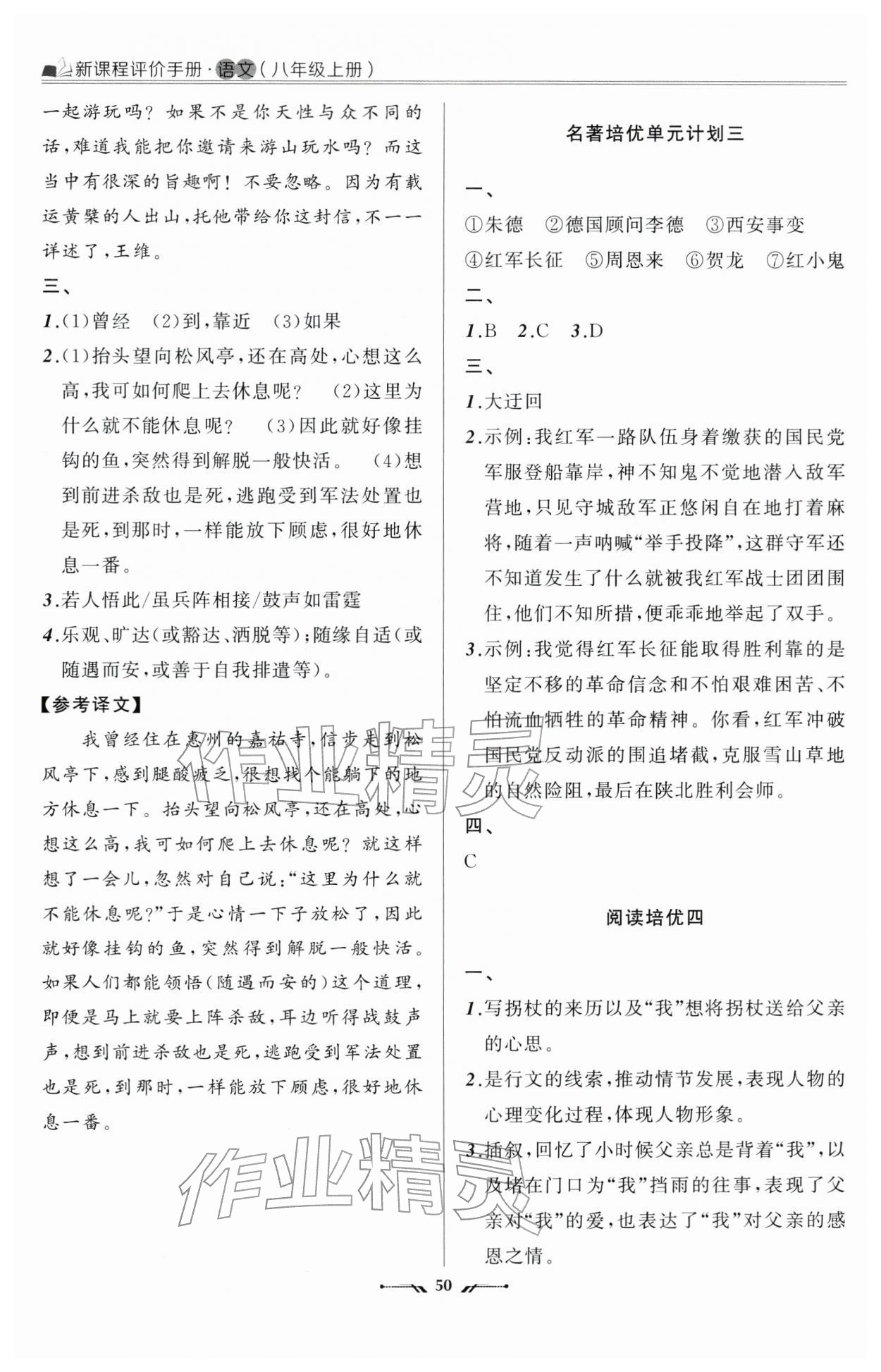 注:目前有些书本章节名称可能整理的还不是很完善,但都是按照顺序排列的,请同学们按照顺序仔细查找。练习册 2025年新课程评价手册八年级语文上册人教版 答案主要是用来给同学们做完题方便对答案用的,请勿直接抄袭。