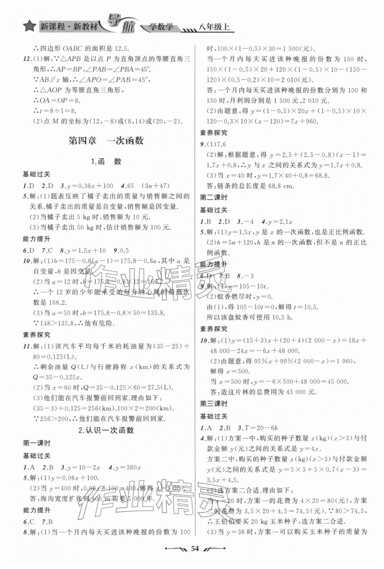 精英家教网> 2025年新课程新教材导航学八年级数学上册北师大版 > 第8页 参考答案