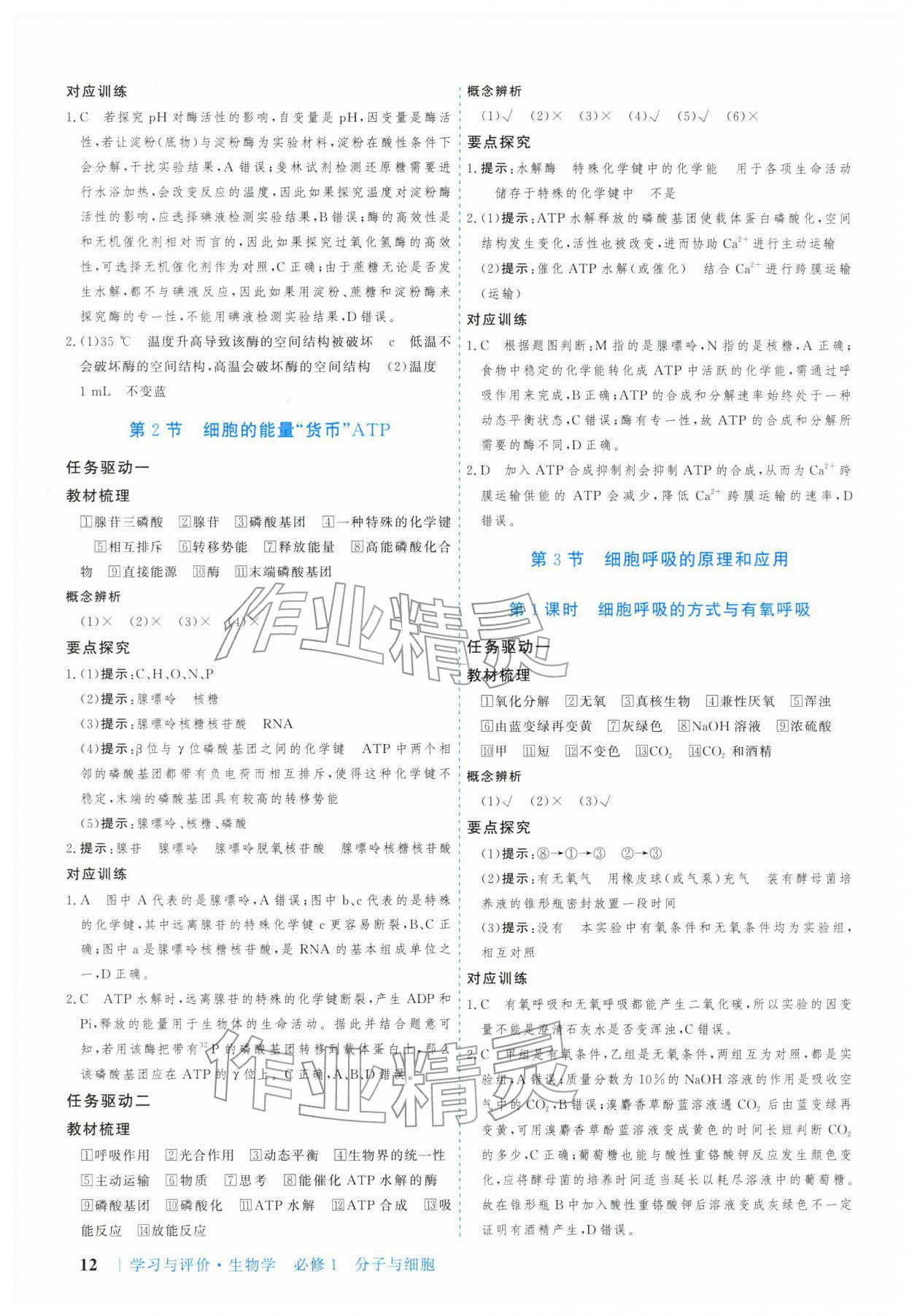 注:目前有些书本章节名称可能整理的还不是很完善,但都是按照顺序排列的,请同学们按照顺序仔细查找。练习册 2025年学习与评价广州出版社高中生物必修第一册人教版 答案主要是用来给同学们做完题方便对答案用的,请勿直接抄袭。