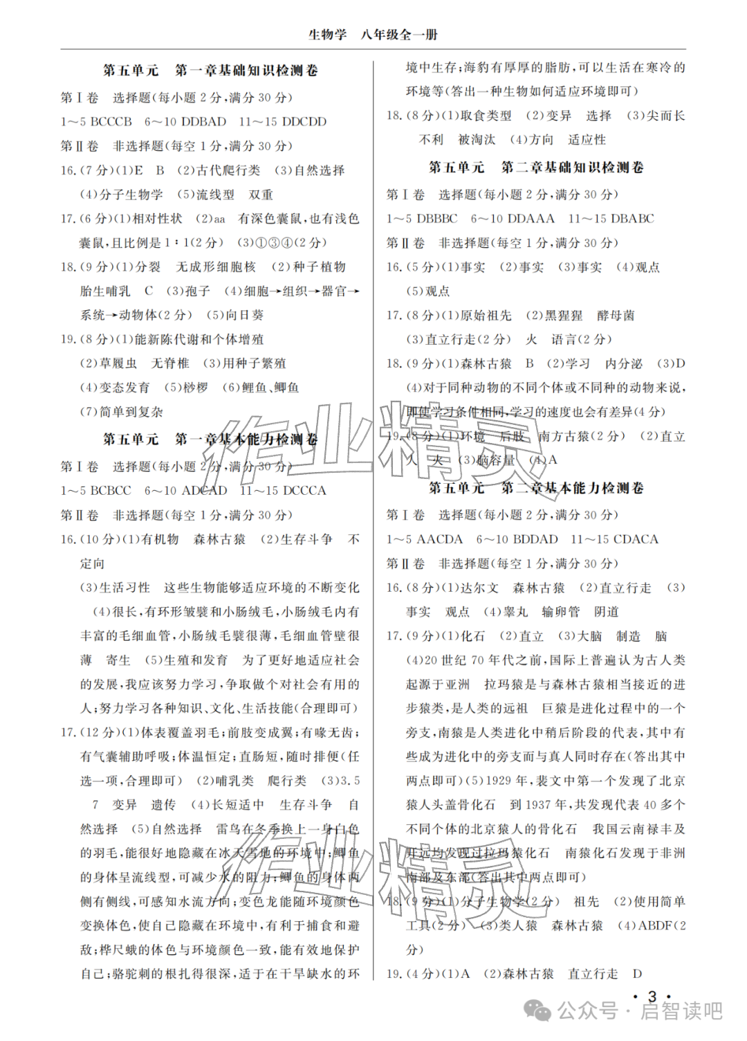 注:目前有些书本章节名称可能整理的还不是很完善,但都是按照顺序排列的,请同学们按照顺序仔细查找。练习册 2025年同步练习册分层检测卷八年级生物全一册济南版 答案主要是用来给同学们做完题方便对答案用的,请勿直接抄袭。