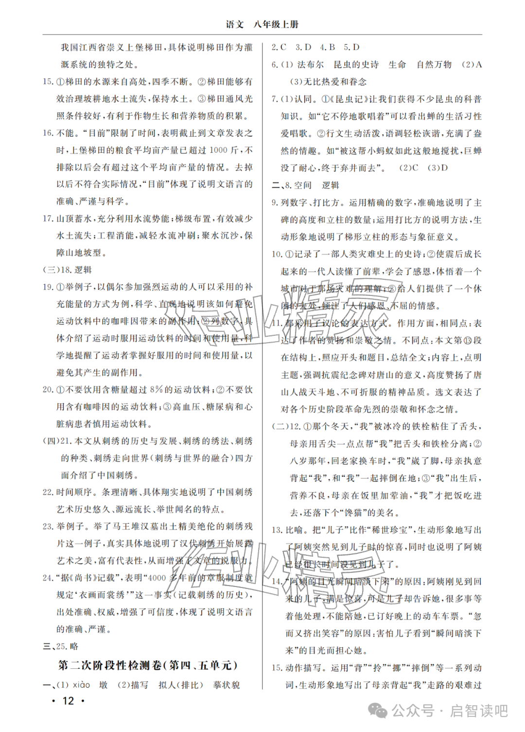 注:目前有些书本章节名称可能整理的还不是很完善,但都是按照顺序排列的,请同学们按照顺序仔细查找。练习册 2025年同步练习册分层检测卷八年级语文上册人教版 答案主要是用来给同学们做完题方便对答案用的,请勿直接抄袭。