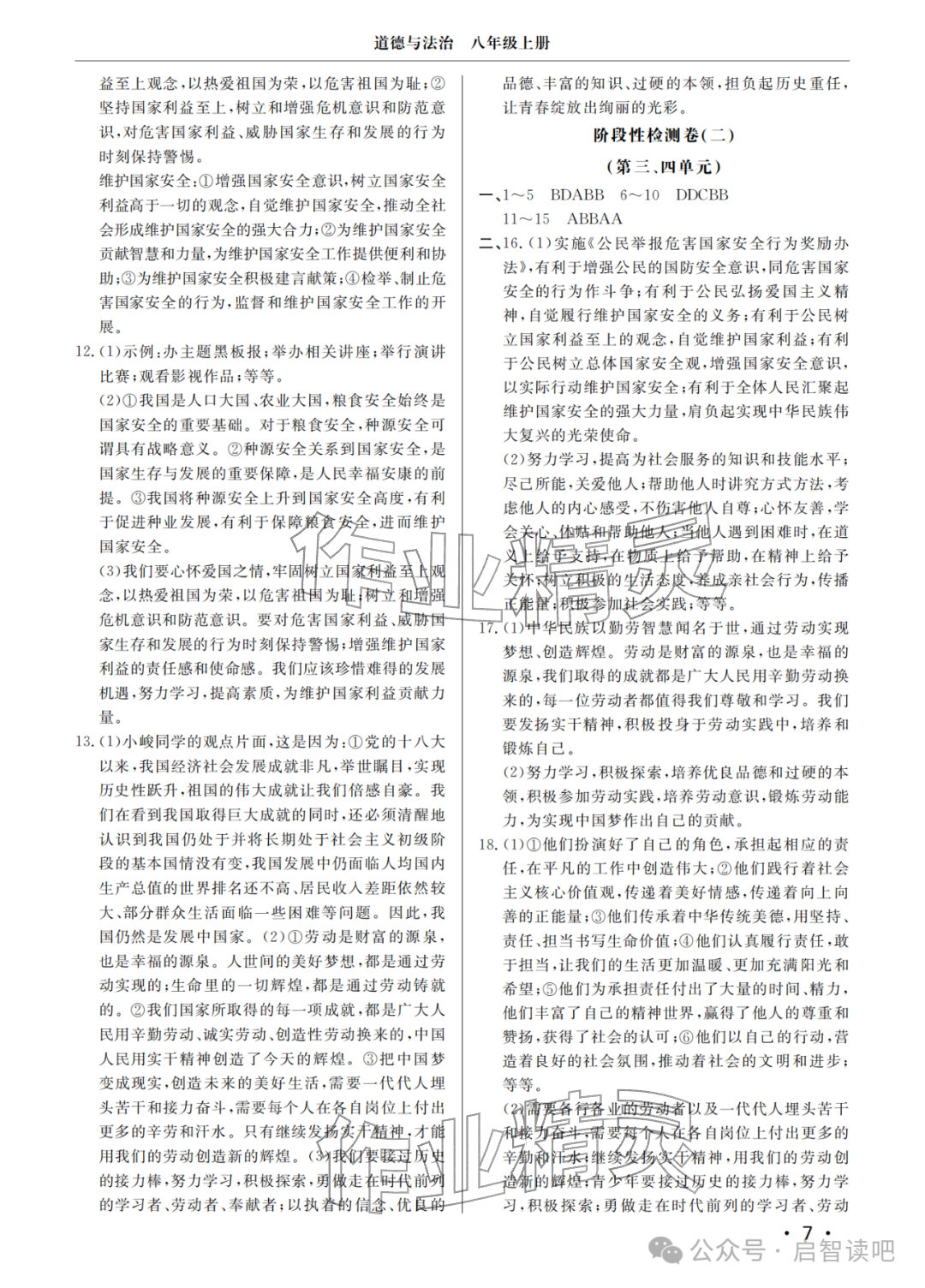 注:目前有些书本章节名称可能整理的还不是很完善,但都是按照顺序排列的,请同学们按照顺序仔细查找。练习册 2025年同步练习册分层检测卷八年级道德与法治上册人教版 答案主要是用来给同学们做完题方便对答案用的,请勿直接抄袭。