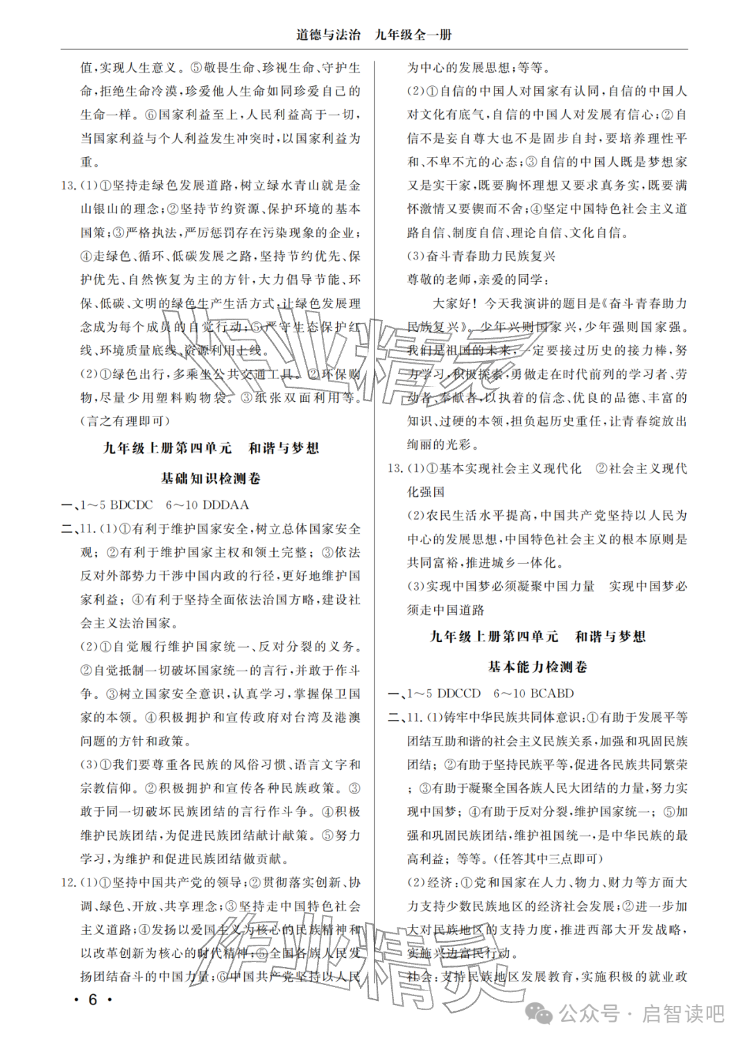 注:目前有些书本章节名称可能整理的还不是很完善,但都是按照顺序排列的,请同学们按照顺序仔细查找。练习册 2025年同步练习册分层检测卷九年级道德与法治全一册人教版 答案主要是用来给同学们做完题方便对答案用的,请勿直接抄袭。