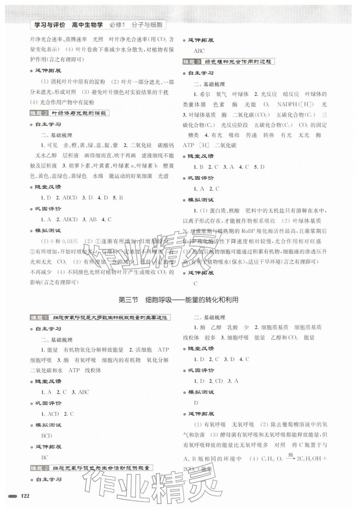 注:目前有些书本章节名称可能整理的还不是很完善,但都是按照顺序排列的,请同学们按照顺序仔细查找。练习册 2025年学习与评价江苏教育出版社高中生物必修1分子与细胞苏教版 答案主要是用来给同学们做完题方便对答案用的,请勿直接抄袭。