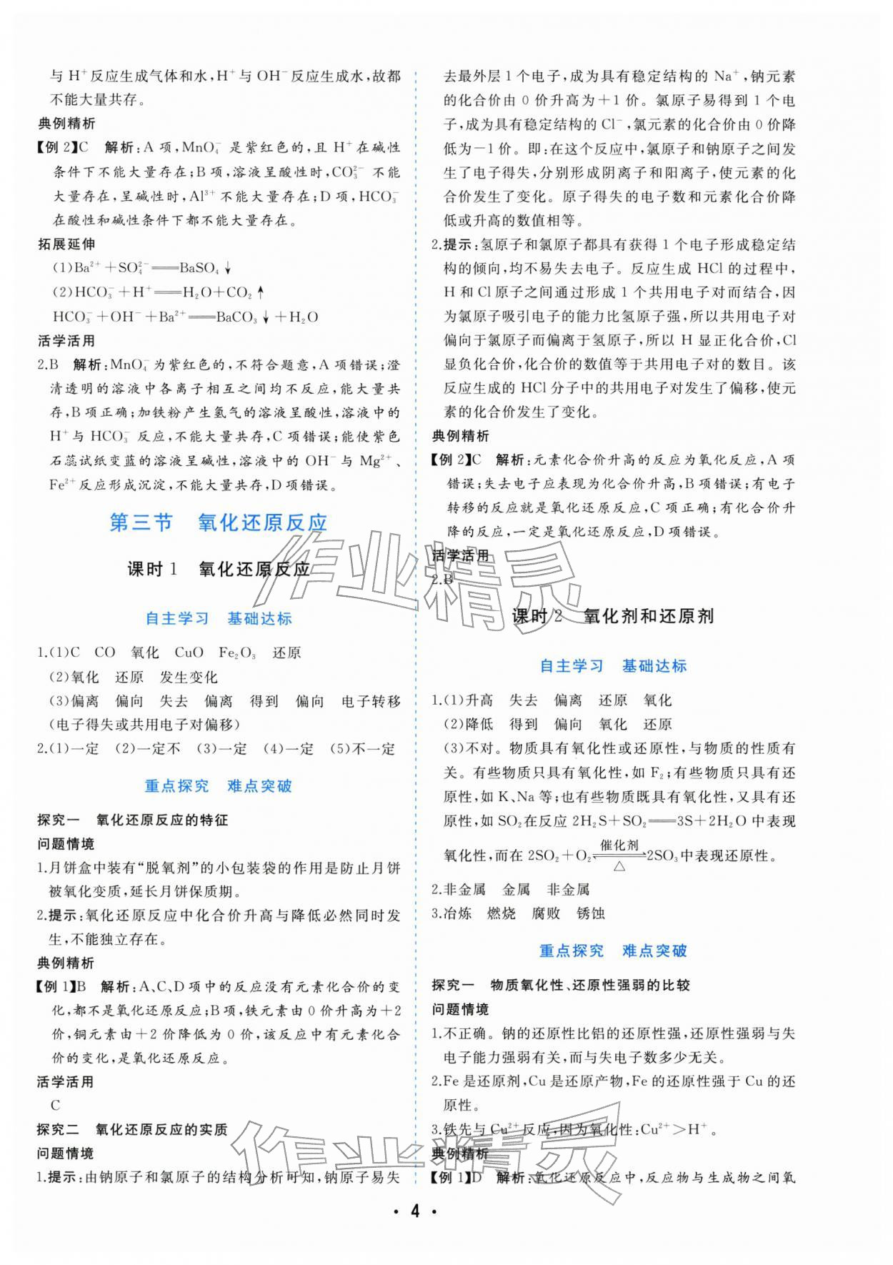 2025年金版学案高中同步辅导与检测高中化学必修第一册人教版 参考答案第4页