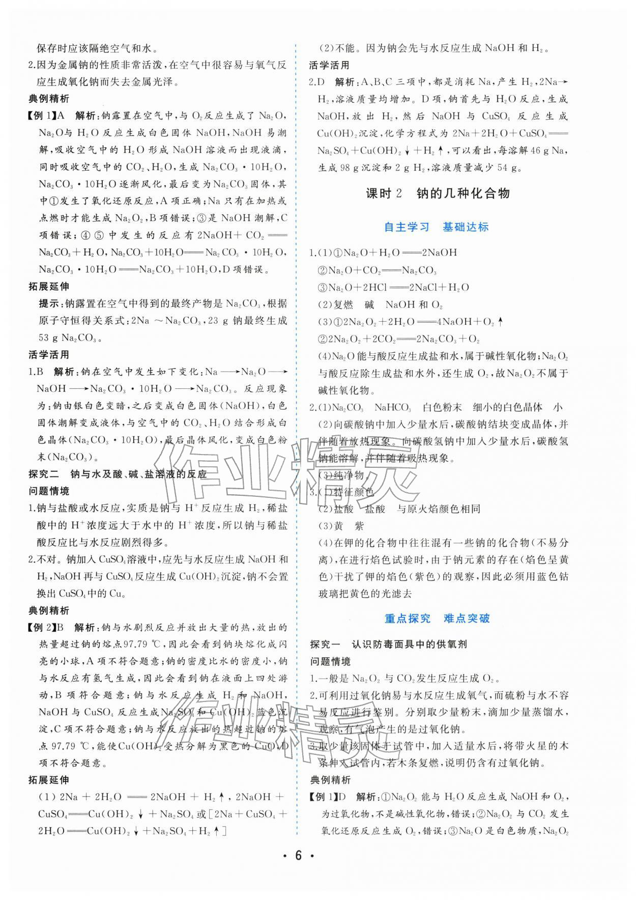 2025年金版学案高中同步辅导与检测高中化学必修第一册人教版 参考答案第6页
