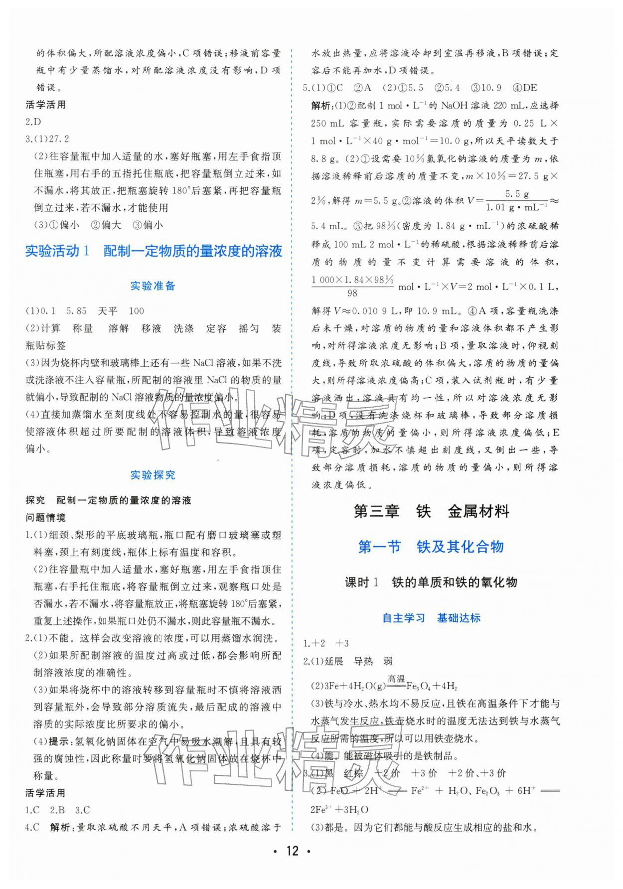 2025年金版学案高中同步辅导与检测高中化学必修第一册人教版 参考答案第12页