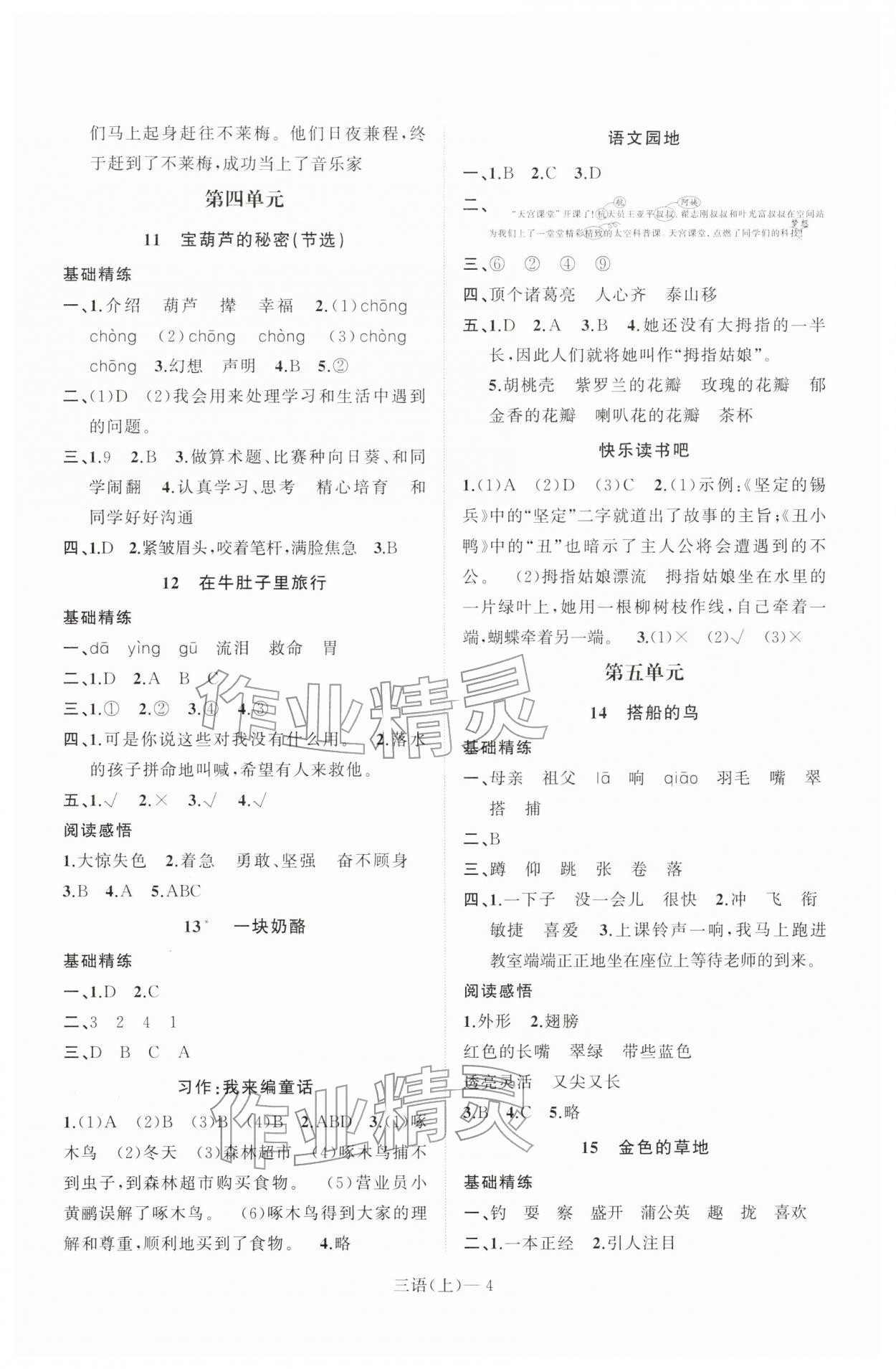 注:目前有些书本章节名称可能整理的还不是很完善,但都是按照顺序排列的,请同学们按照顺序仔细查找。练习册 2025年小学学习好帮手三年级语文上册人教版 答案主要是用来给同学们做完题方便对答案用的,请勿直接抄袭。