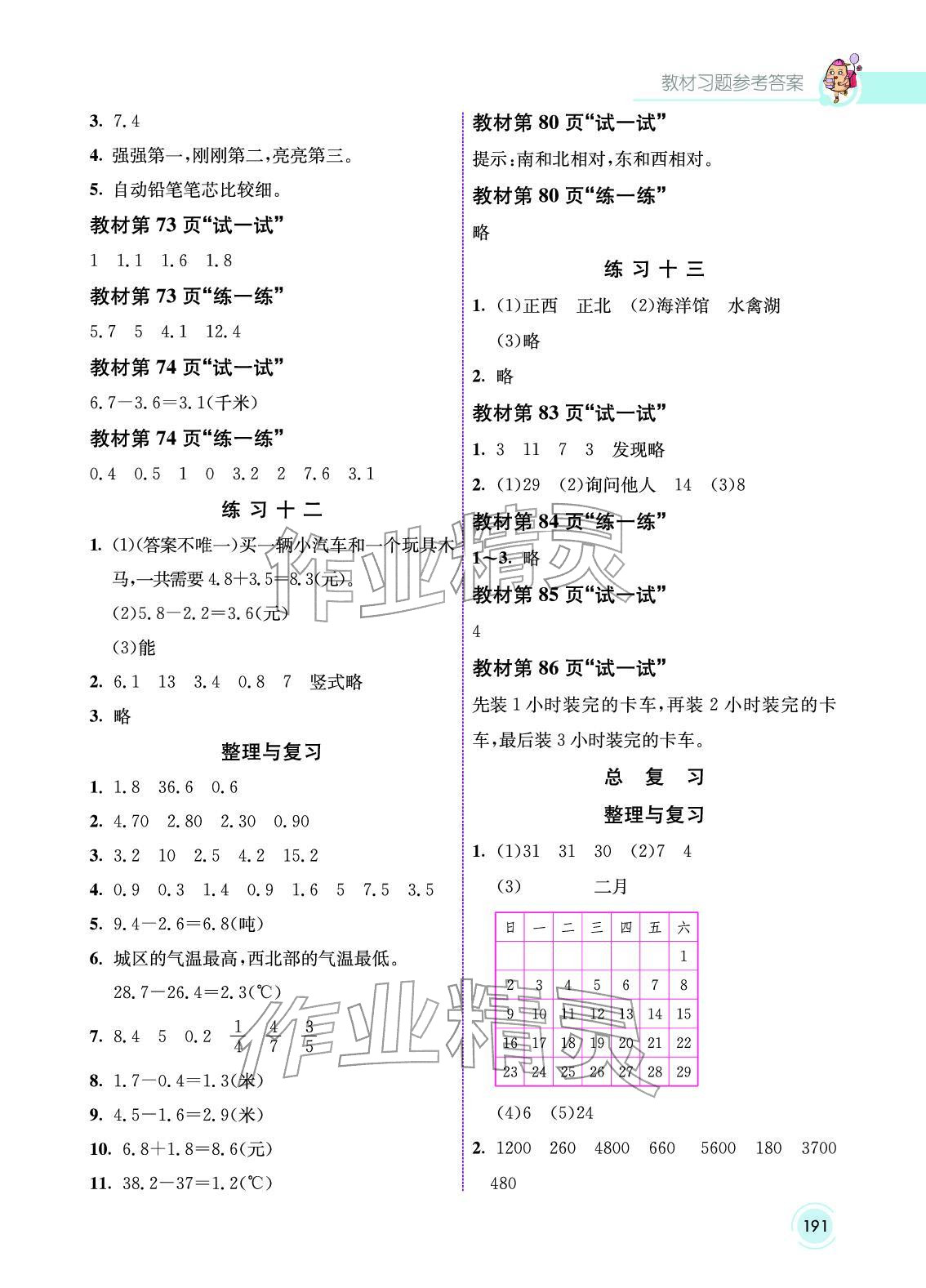 注:目前有些书本章节名称可能整理的还不是很完善,但都是按照顺序排列的,请同学们按照顺序仔细查找。练习册 2025年教材课本三年级数学下册北京版 答案主要是用来给同学们做完题方便对答案用的,请勿直接抄袭。