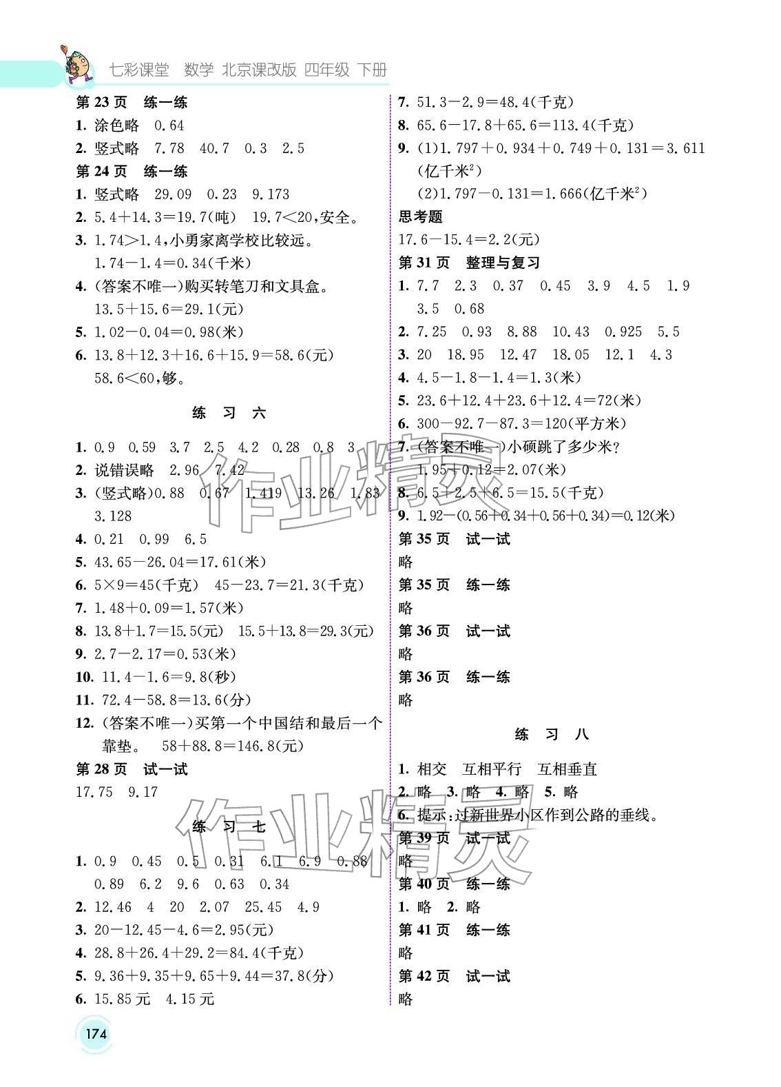 注:目前有些书本章节名称可能整理的还不是很完善,但都是按照顺序排列的,请同学们按照顺序仔细查找。练习册 2025年教材课本四年级数学下册北京版 答案主要是用来给同学们做完题方便对答案用的,请勿直接抄袭。