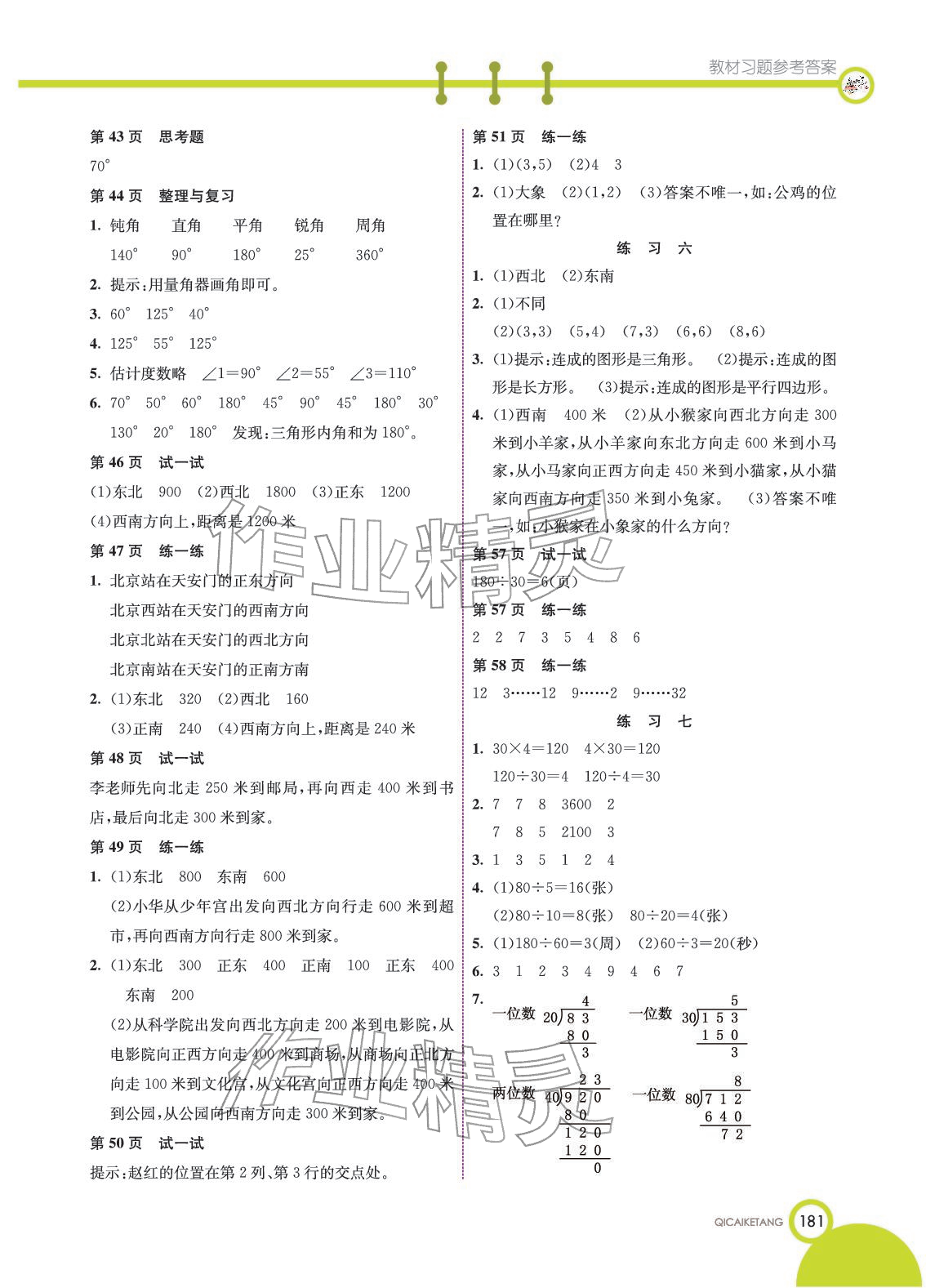 注:目前有些书本章节名称可能整理的还不是很完善,但都是按照顺序排列的,请同学们按照顺序仔细查找。练习册 2025年教材课本四年级数学上册北京课改版 答案主要是用来给同学们做完题方便对答案用的,请勿直接抄袭。