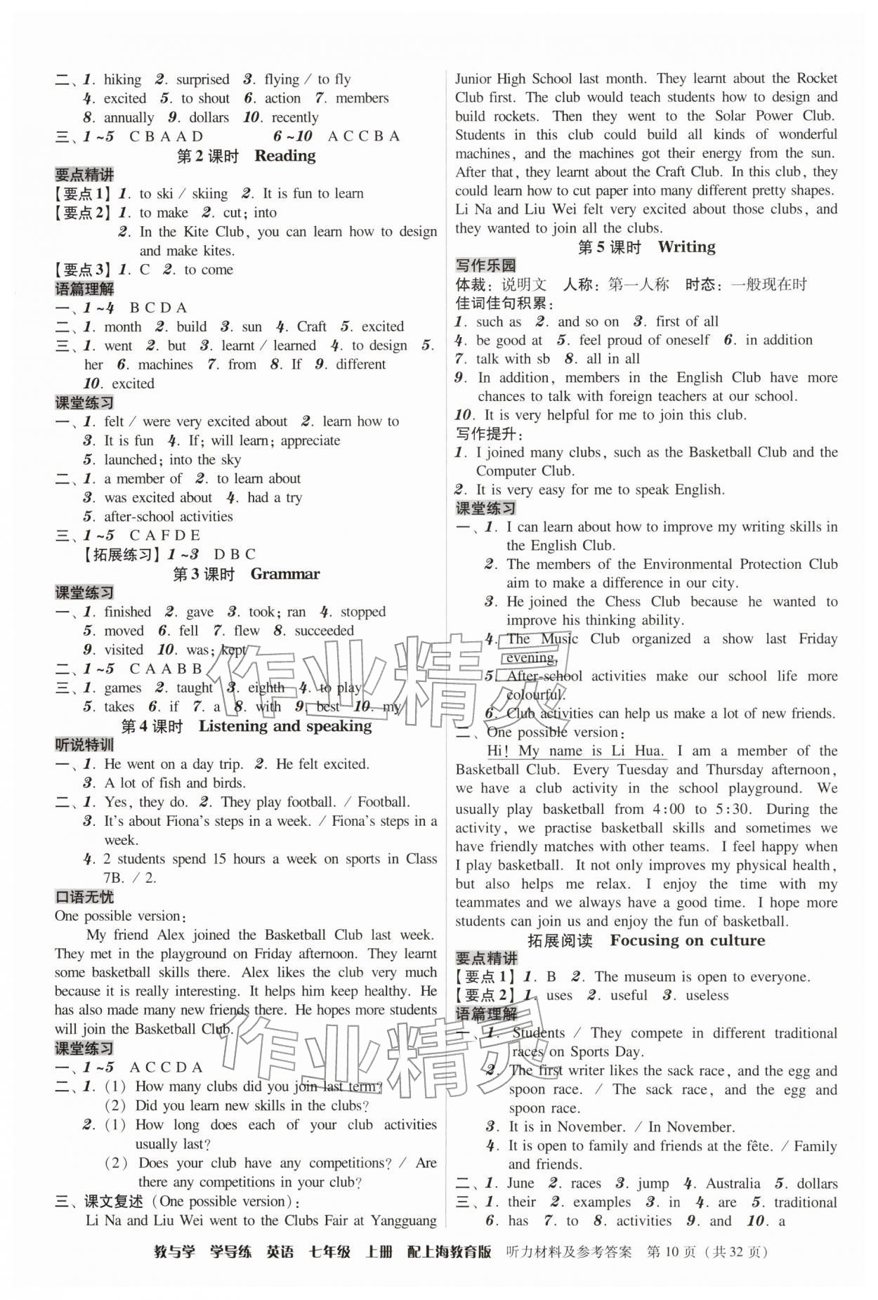 注:目前有些书本章节名称可能整理的还不是很完善,但都是按照顺序排列的,请同学们按照顺序仔细查找。练习册 2025年教与学学导练七年级英语上册沪教版 答案主要是用来给同学们做完题方便对答案用的,请勿直接抄袭。