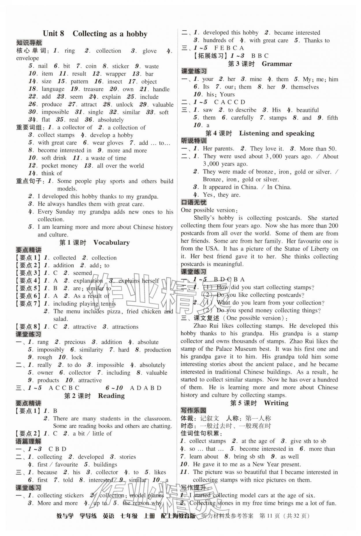 注:目前有些书本章节名称可能整理的还不是很完善,但都是按照顺序排列的,请同学们按照顺序仔细查找。练习册 2025年教与学学导练七年级英语上册沪教版 答案主要是用来给同学们做完题方便对答案用的,请勿直接抄袭。