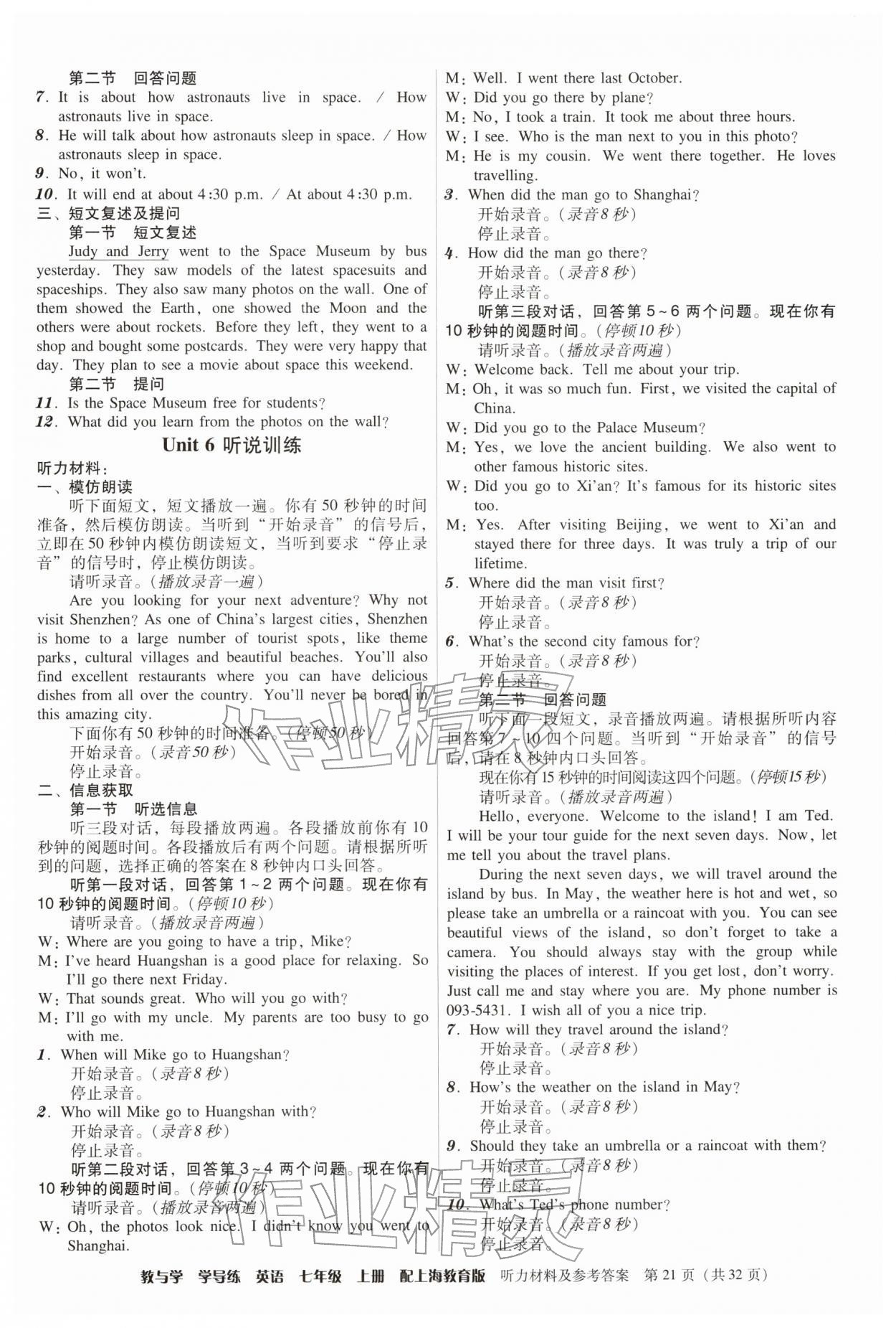 注:目前有些书本章节名称可能整理的还不是很完善,但都是按照顺序排列的,请同学们按照顺序仔细查找。练习册 2025年教与学学导练七年级英语上册沪教版 答案主要是用来给同学们做完题方便对答案用的,请勿直接抄袭。