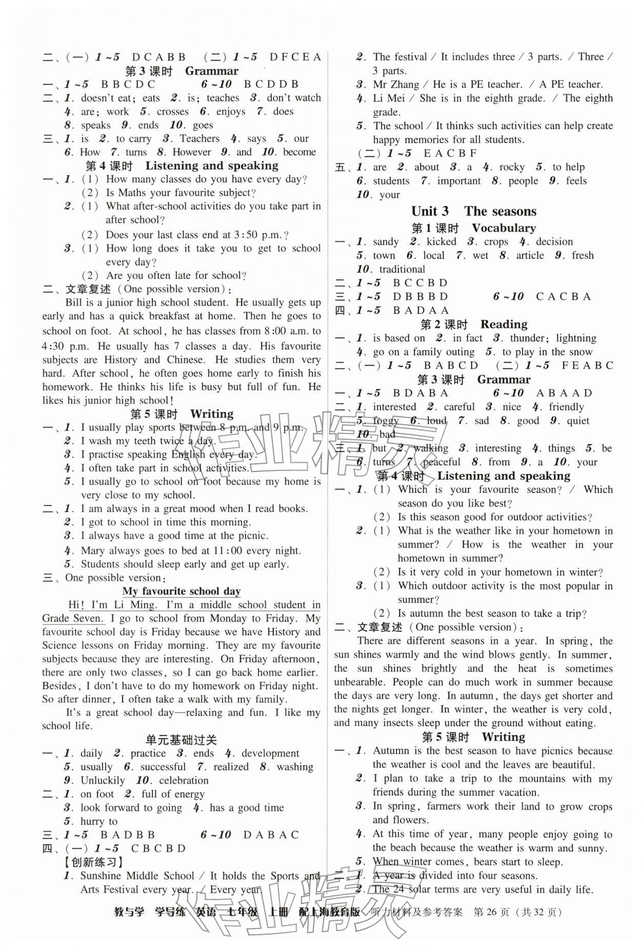 注:目前有些书本章节名称可能整理的还不是很完善,但都是按照顺序排列的,请同学们按照顺序仔细查找。练习册 2025年教与学学导练七年级英语上册沪教版 答案主要是用来给同学们做完题方便对答案用的,请勿直接抄袭。
